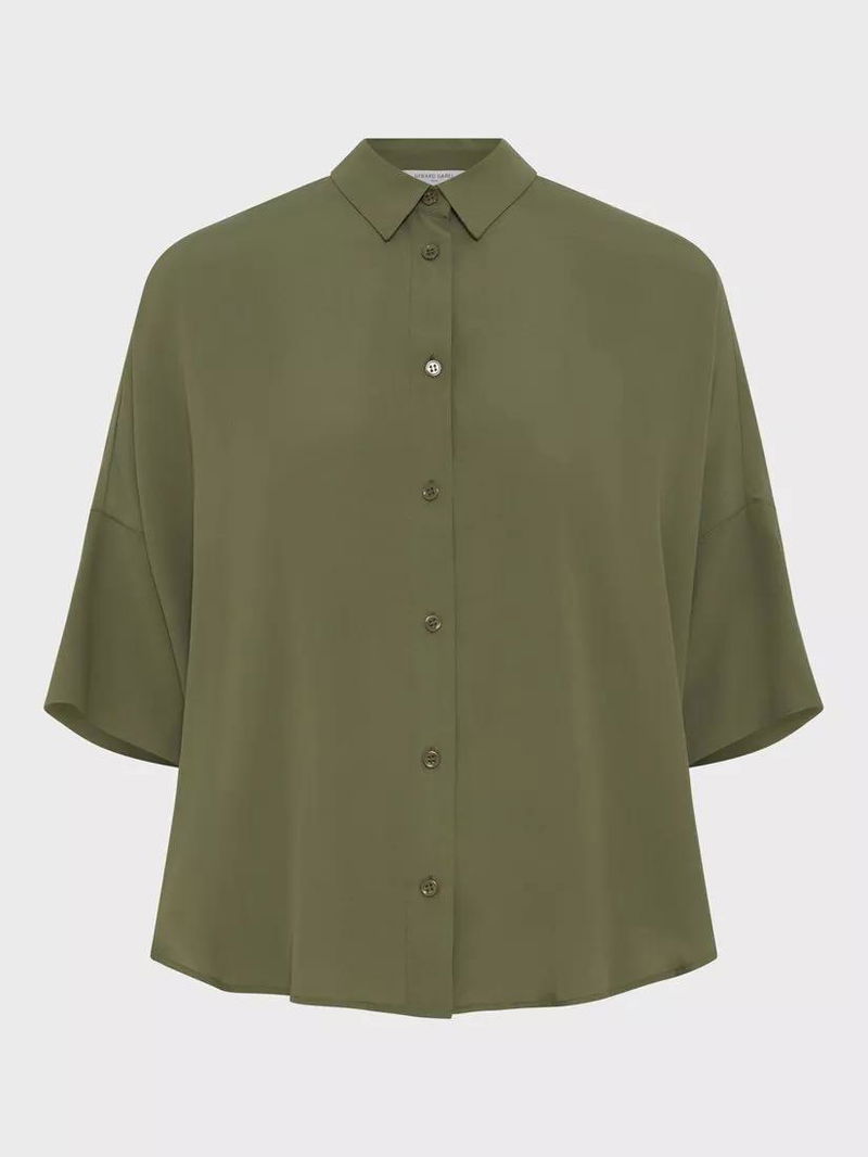 A lightweight, draping shirt with a classic collar and short sleeves.