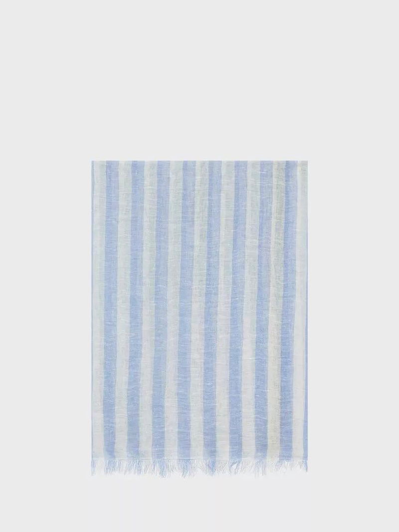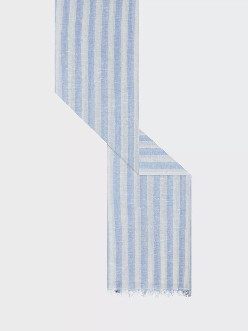 Dominique Stripe Linen Blend Scarf, Bluesky