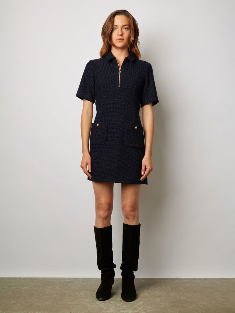 Flattering in all the right places, this mini dress from Gerard Darel is stitched together from a blend imbued with cotton. Topped with a zip neck and short sleeves, this style is kept minimal for a truly seasonal collection.