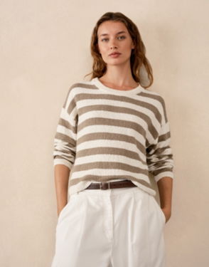 With a neat v-neckline, this lightweight jumper by Gerard Darel livens up stripes from their default status and comes in pure linen for comfortable wear.