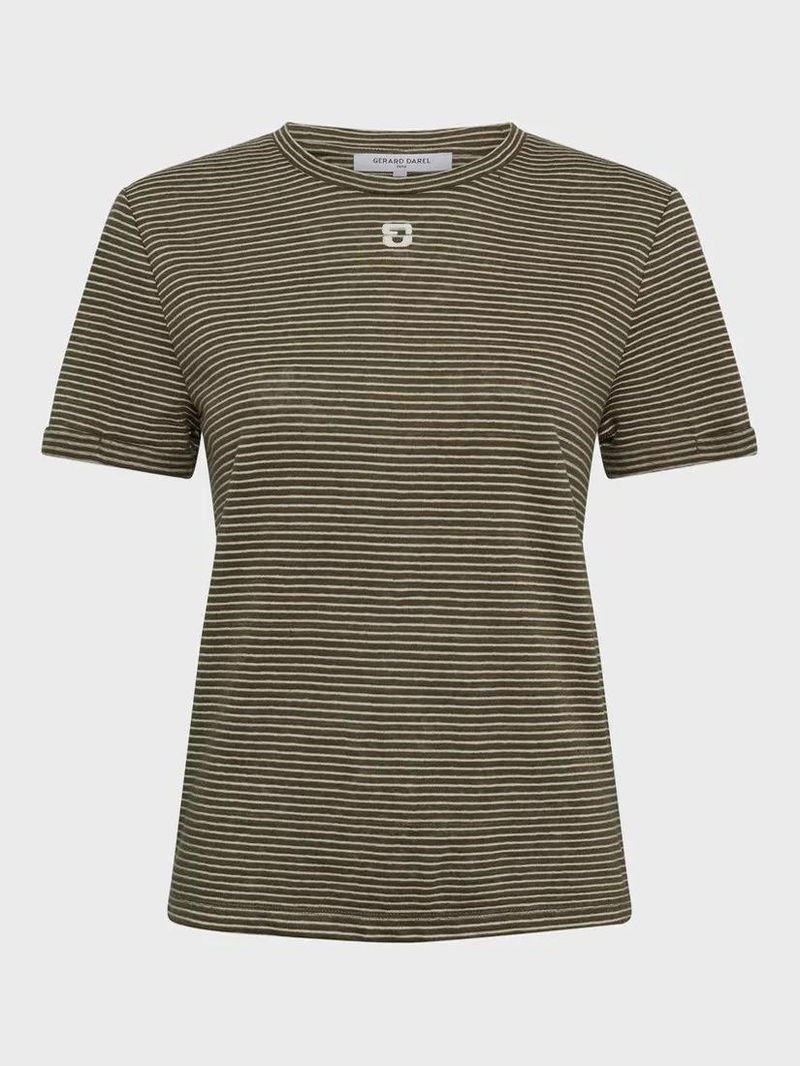 Melva Stripe Linen Rich T-Shirt, Khaki Green