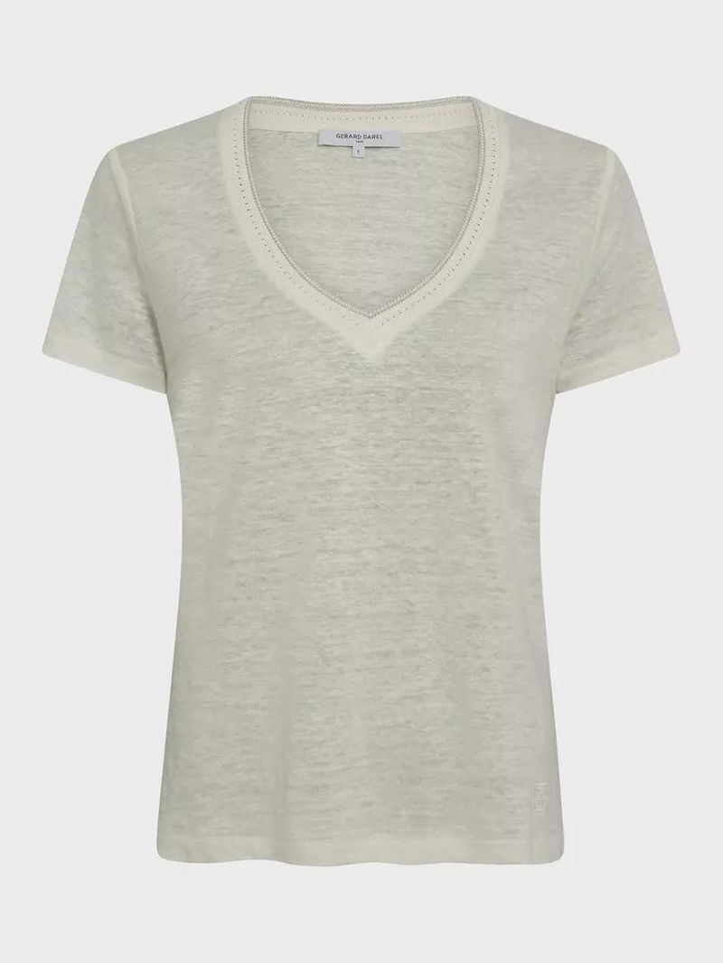 Mirana V-Neck Pure Linen T-Shirt, White