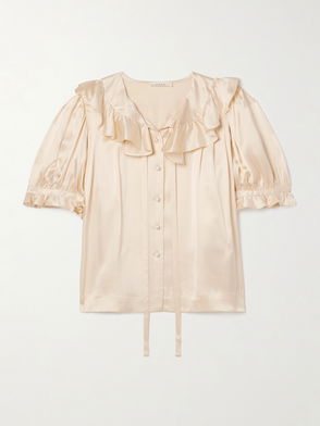 With a frilly v-neckline and short cuffed sleeves, this button-front shirt from Gerard Darel is effortless in summer.