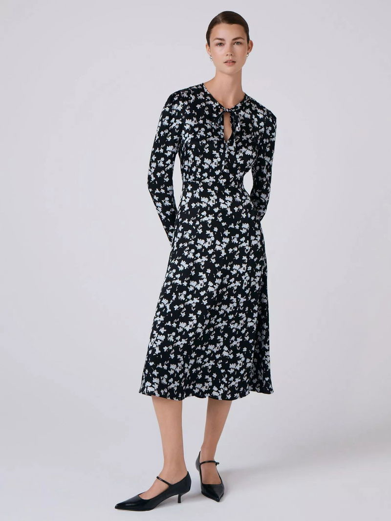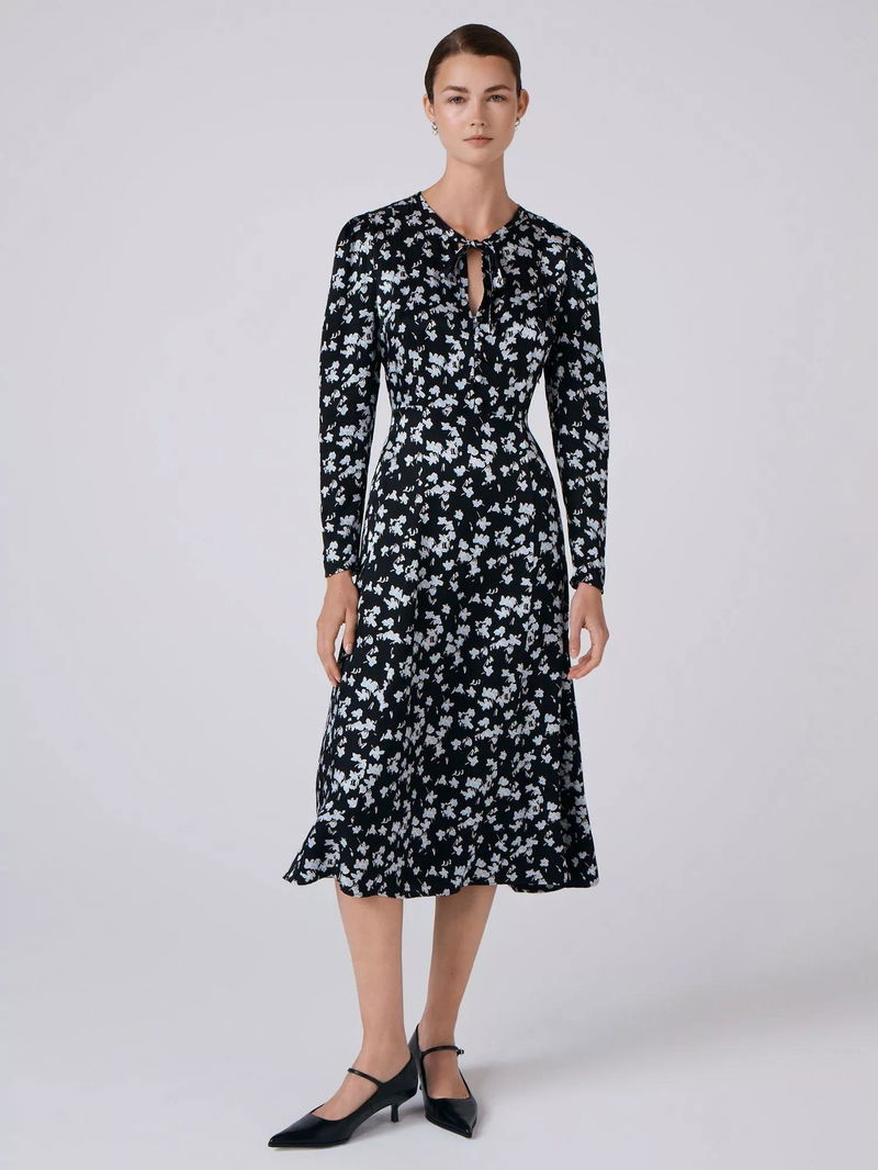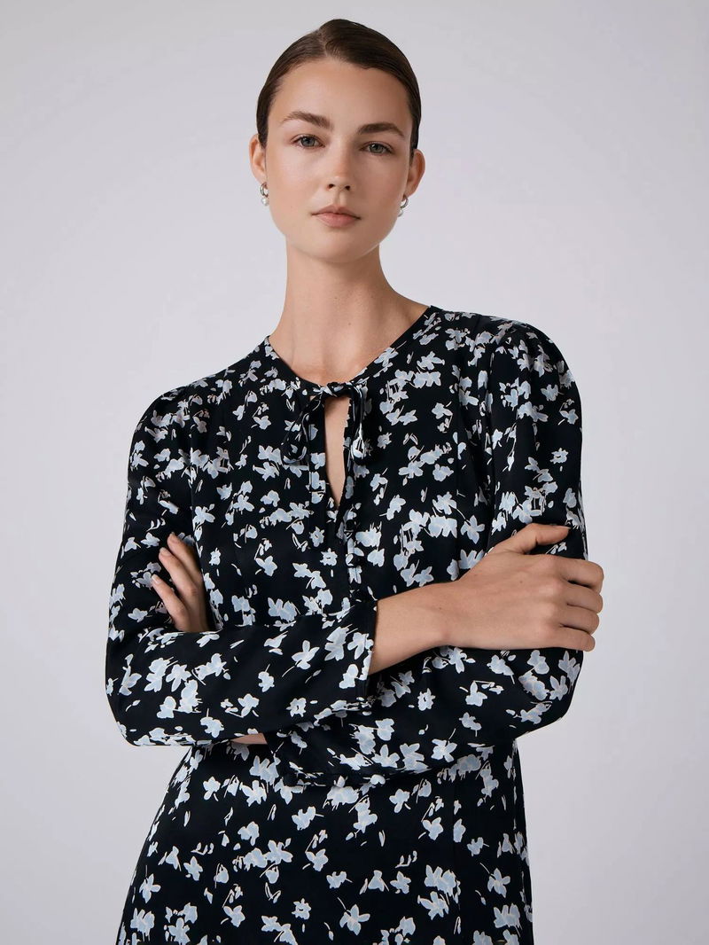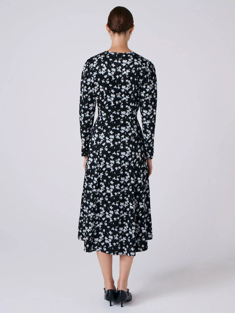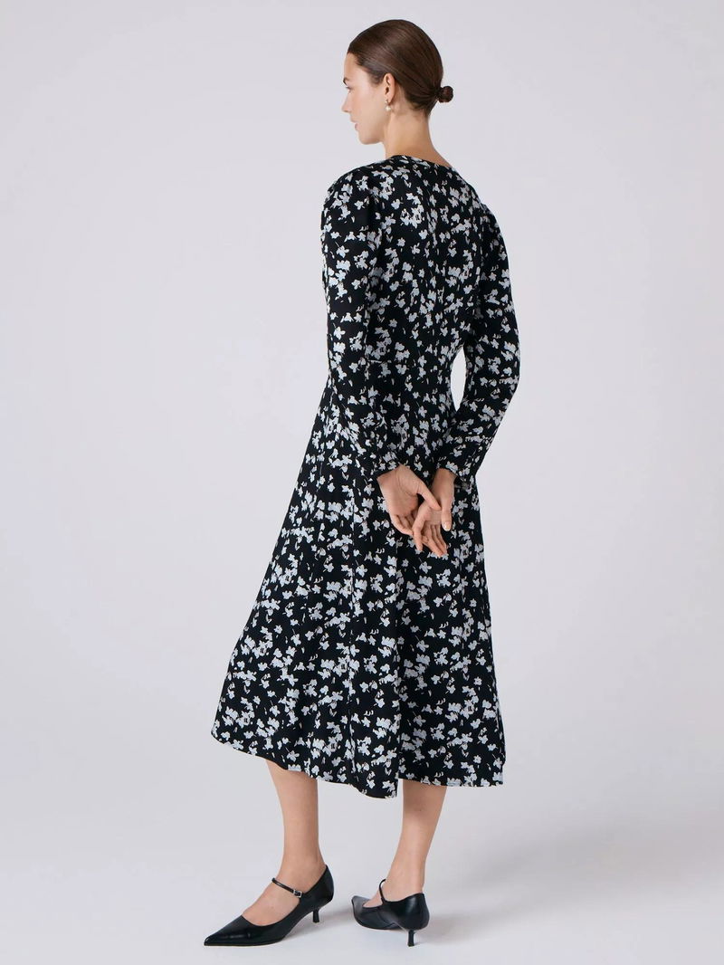 Ana Floral Midi Dress, Black/Blue