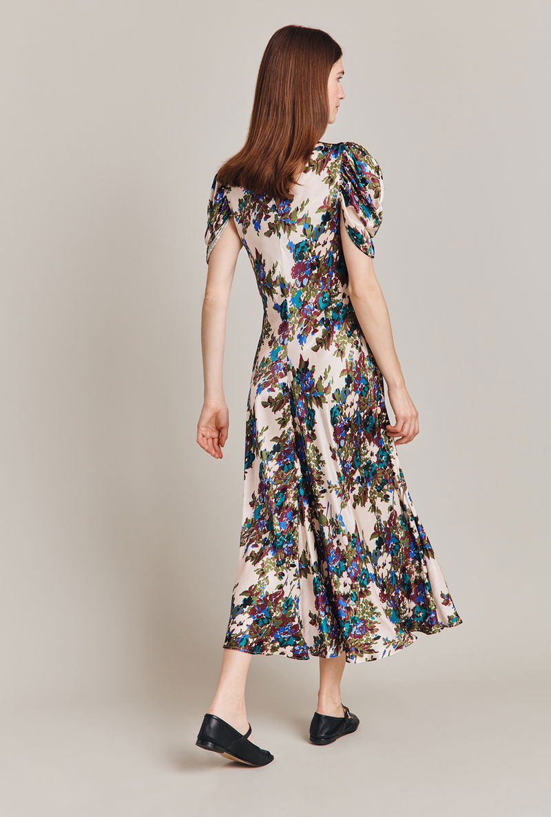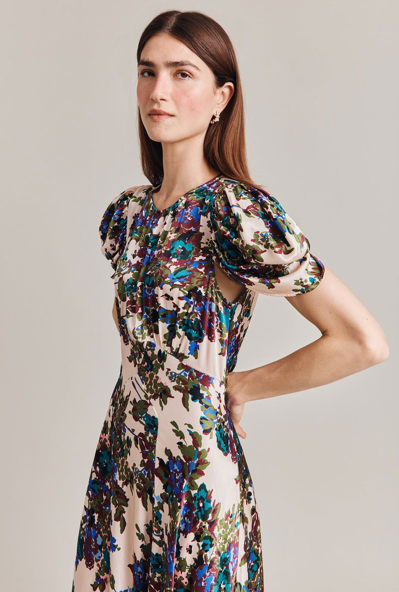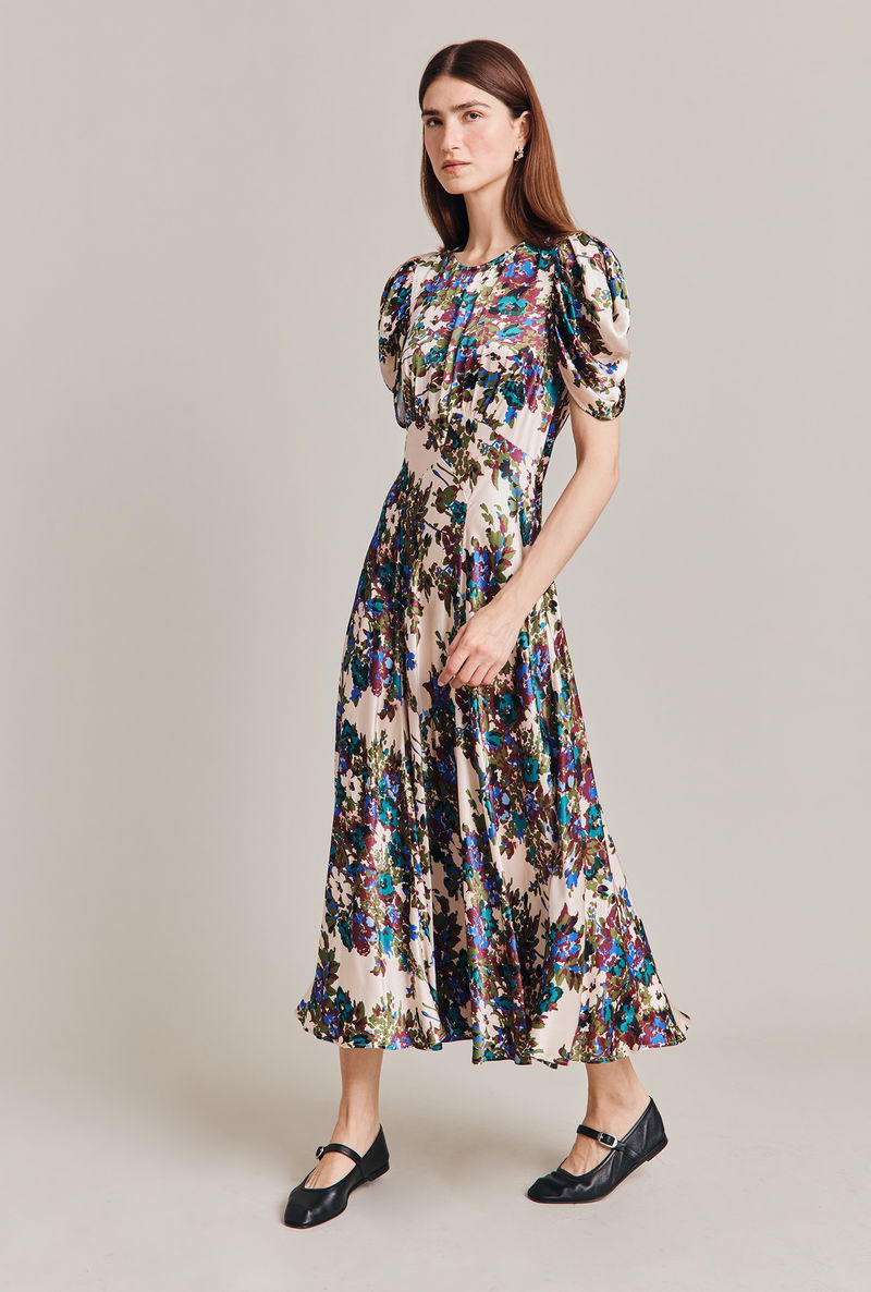 Beatrix is a go-to midi length dress you can wear season after season. Crafted from heavier satin, she’s fit and flare in style thanks to her short puffed sleeves and flattering empire line bust. Dress up with boots or down with sneakers.