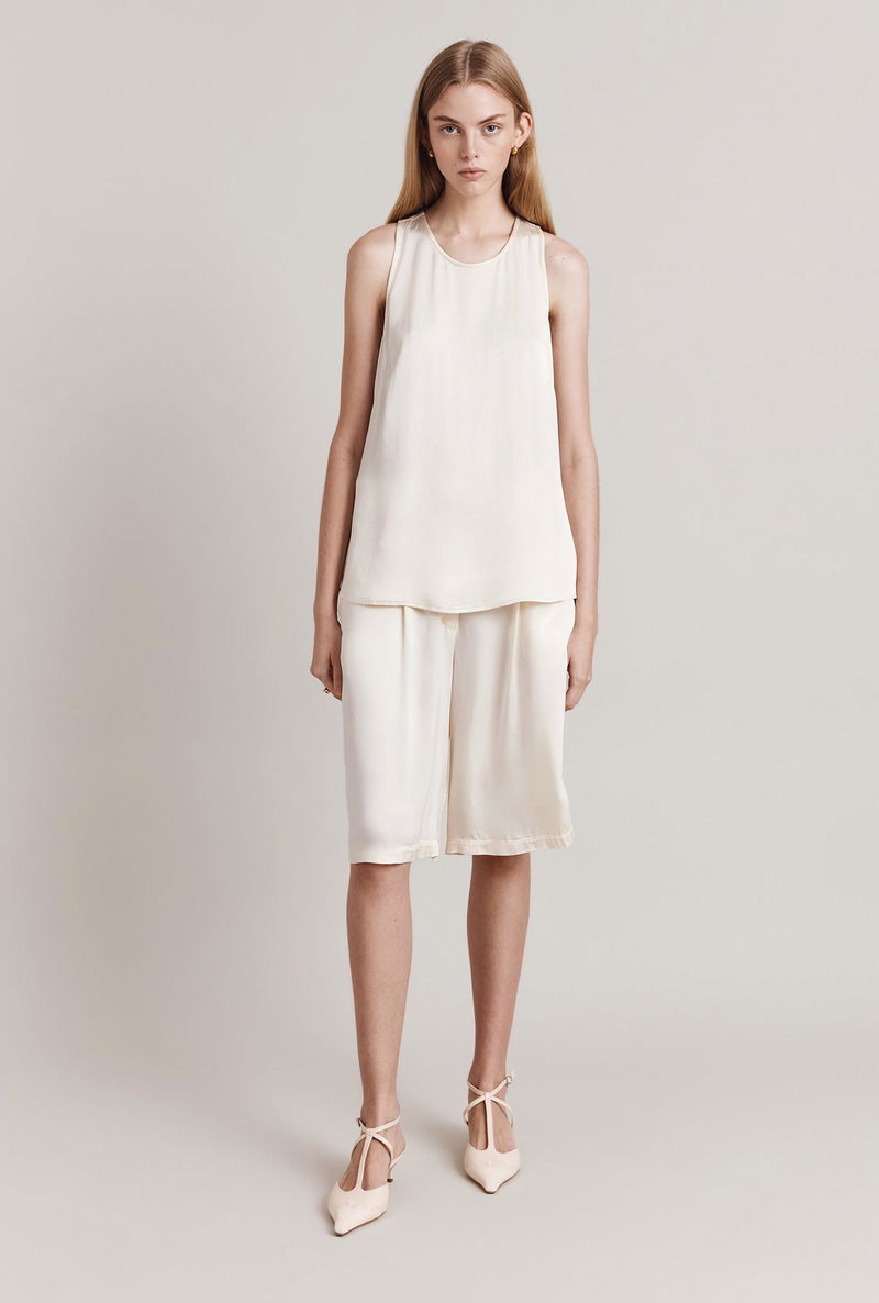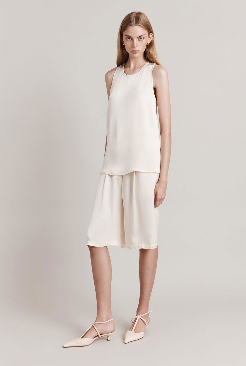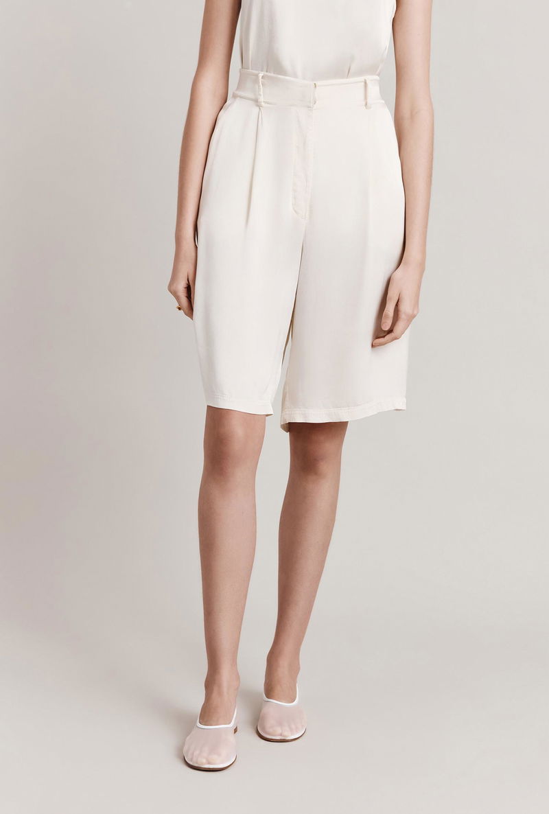 Switch up your warm-weather wardrobe with our Bella bermuda shorts. A fluid take on a tailored classic, these longline shorts are the perfect switch-up for skirts, featuring a shell-button fly fastening, fixed waistband with belt loops, front pleats and subtle side-seam pockets. Style with a slim leather belt and kitten heels for a ladylike take.