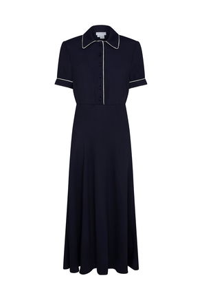 Crafted from satin back crepe, this chic midi dress is all about the statement contrast colour collar and front placket, which adds a unique twist to a classic style.