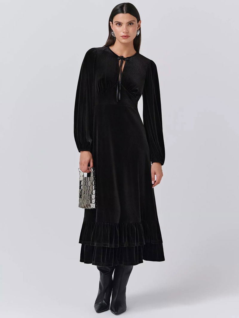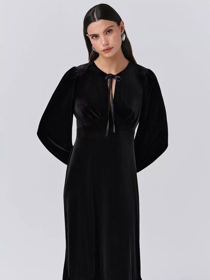 Elenanor Velvet Long Sleeved Tie Front Dress