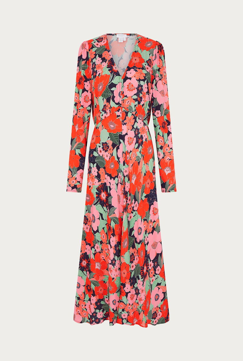 Meet Fran, a floral print midi with long sleeves and a flattering empire line. Crafted from our signature viscose, dress Fran up with heels for more formal occasions, or wear during the day with boots.