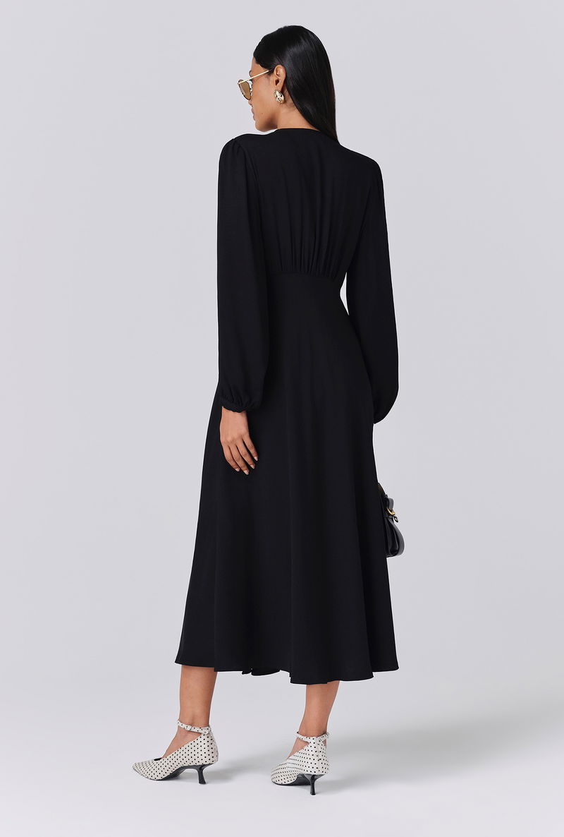 With long voluminous sleeves, delicate covered button detailing, v neckline, flattering underbust seam and bias cut skirt, it’s a dress that can take you almost anywhere - from work to special occasions. Accessorise or keep it simple, Francesca adapts to you.
