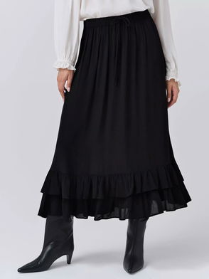 Fitted through the hips and falling to a gathered single tier, this button front midi skirt from Ghost is brought to life with contrasting spots. Beloved for its weightless feel in crepe, it's a style that's made to work in tandem with your capsule edit.