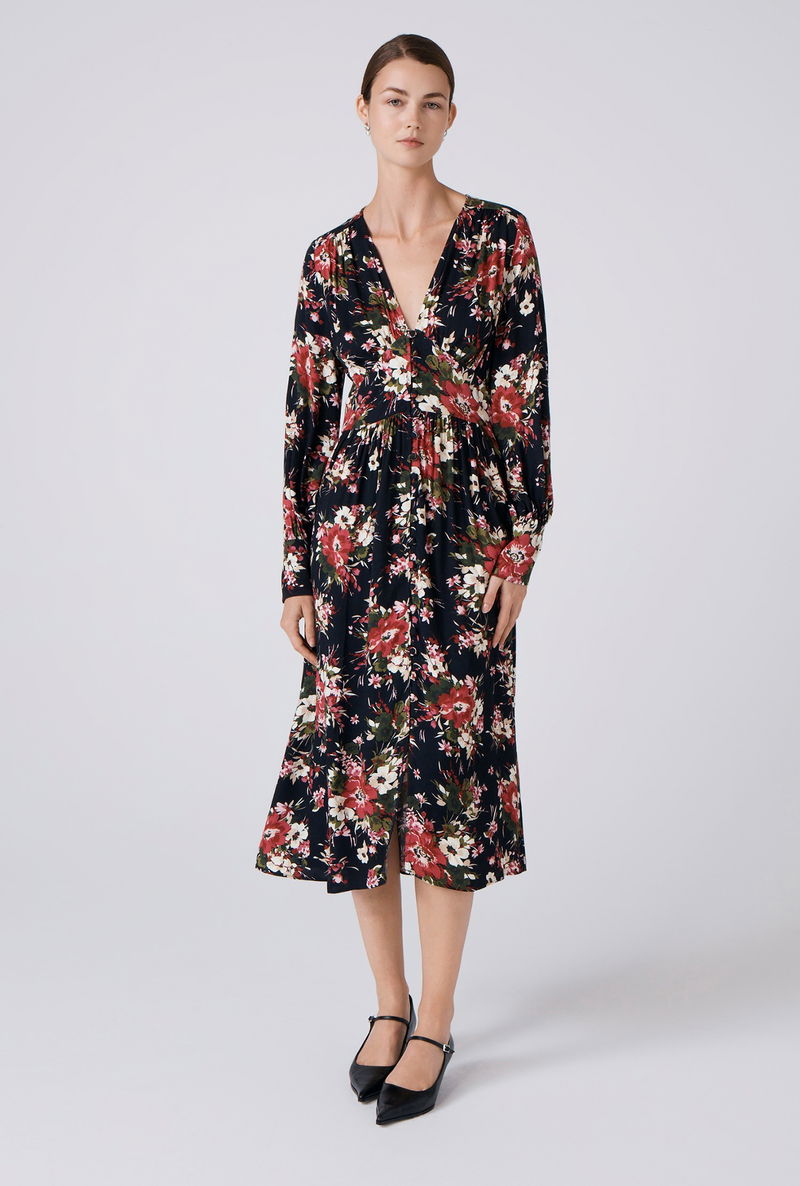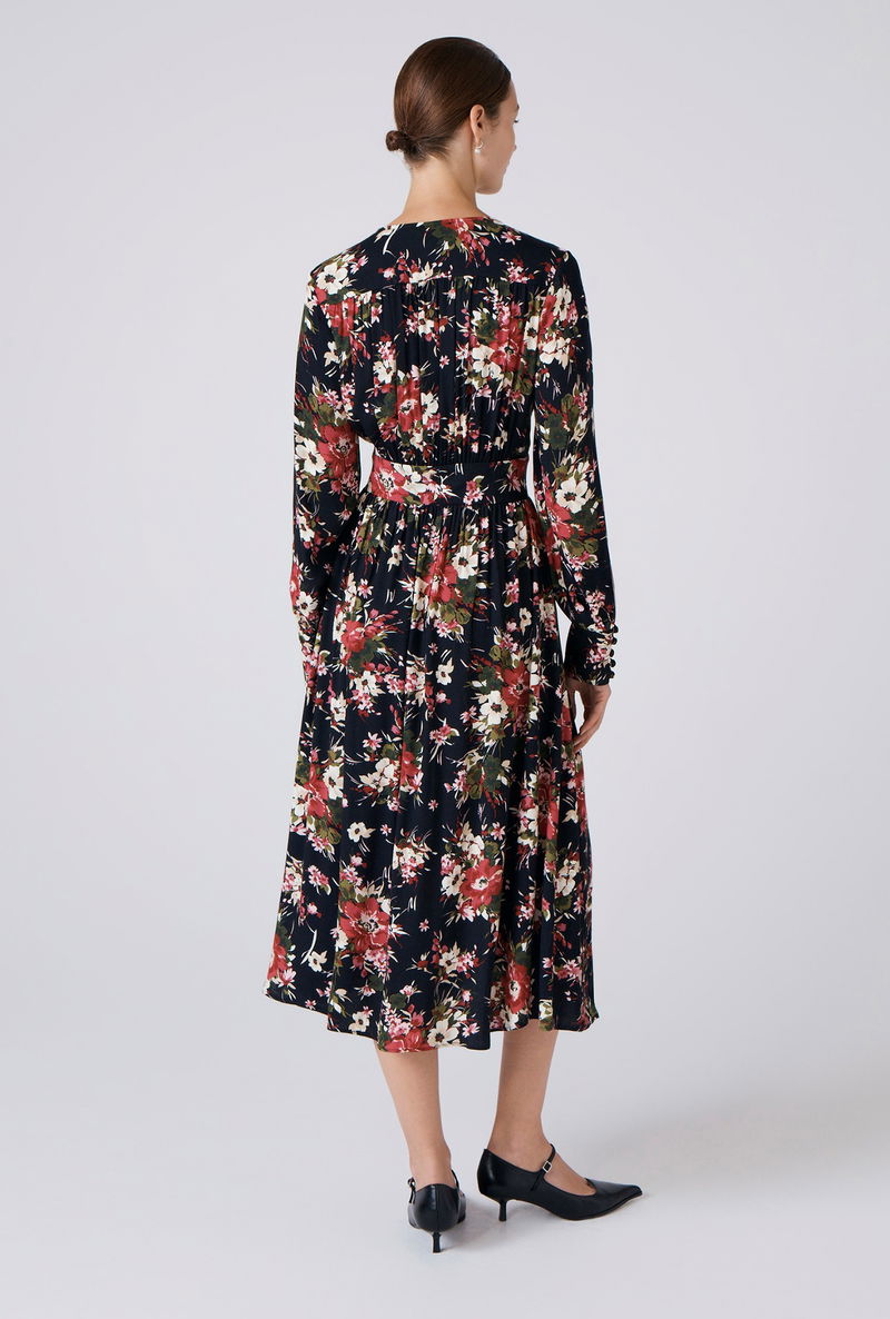 Taking inspiration from classic vintage tea dress styles, Jade is a chic way to take florals into the new season. Cut from versatile crepe fabric with a waist-accentuating underbust panel, plunging v neckline and covered buttons at the front and cuffs. We love it worn with Mary-Janes for a retro-meets-contemporary feel.