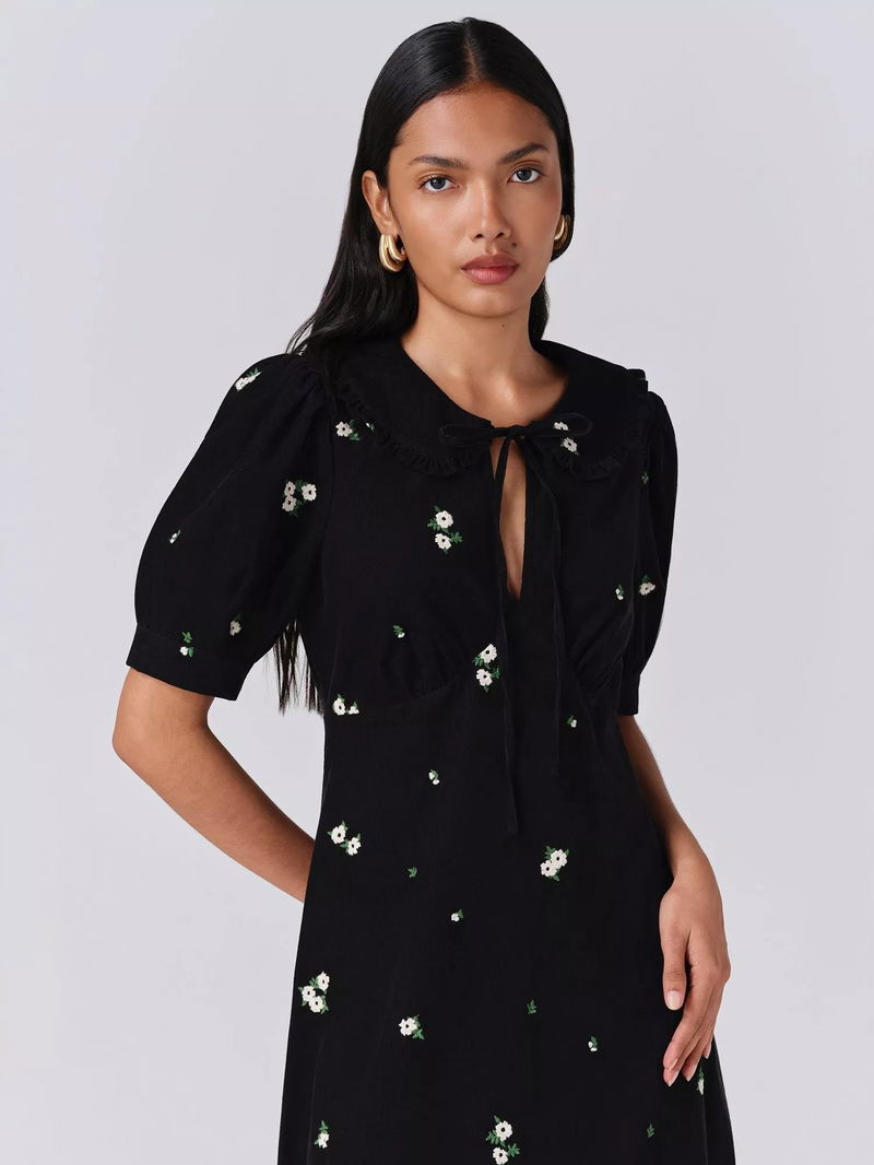 Juniper Corduroy Midi Dress, Black