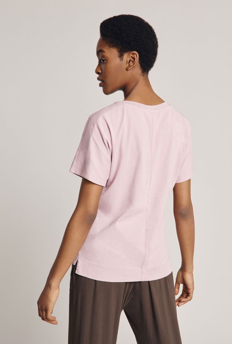 Made from 100% organic cotton, and garment dyed for that ultimate soft-to-touch feel, the Go By Ghost dusted mauve loose tee is designed in a boxy shape with grown on sleeves that provides room and movement to withstand the most flexible of workouts. With extra details such as a stepped hem and ribbed detail along the neckline and shoulder, this is a functional tee that is perfect for exercise and casual wear alike. Wear yours as a set with the matching high waisted leggings for a co-ordinated look.