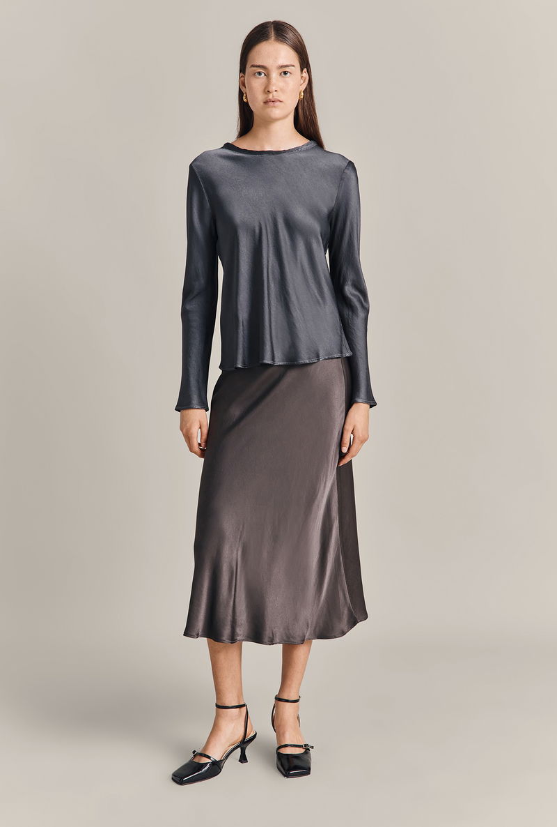 In an array of different colours, the Mabel top is crafted from our signature satin fabric and cut on the bias. Luxuriously soft and comfortable, Mabel features long sleeves and a round neckline. Style with jeans, trousers, skirts or shorts – this versatile top is a wardrobe essential.