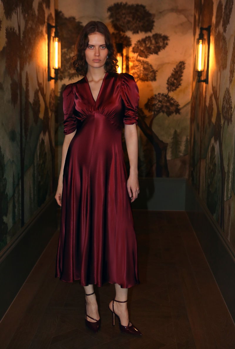 Taking inspiration from the classic tea dress, Mia is a midi-length style in our signature satin fabric. Cut on the bias for a universally flattering fit with a v neckline and elbow-length sleeves that are gently gathered to create volume at the shoulder, it’s the perfect piece to take you to all manner of occasions - just accessorise to suit.