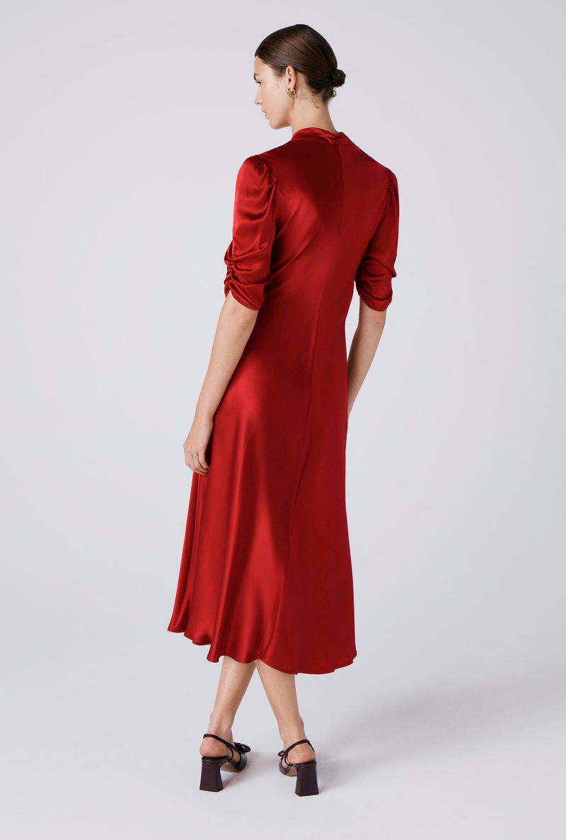 Taking inspiration from the classic tea dress, Mia is a midi-length style in our signature satin fabric. Cut on the bias for a universally flattering fit with a v neckline and elbow-length sleeves that are gently gathered to create volume at the shoulder, it’s the perfect piece to take you to all manner of occasions - just accessorise to suit.
