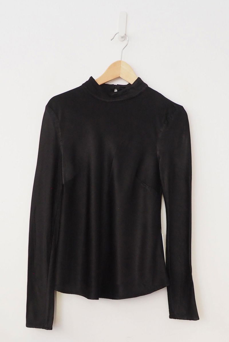 Meet Mika, this mock turtleneck top, crafted from heavier satin – perfect for the cooler temperatures. Bias cut for a flattering fit, she features a rear keyhole and button fastening. Pair with the Clara Trouser or Imogen Trouser, and layer over a leather jacket.
