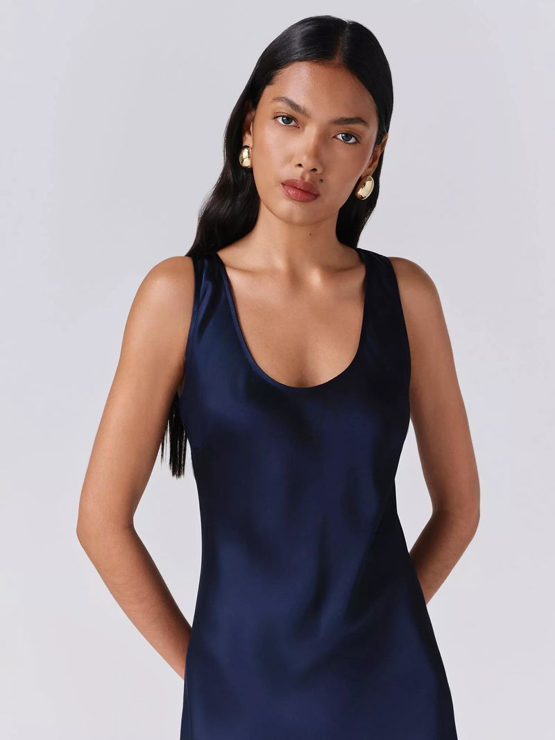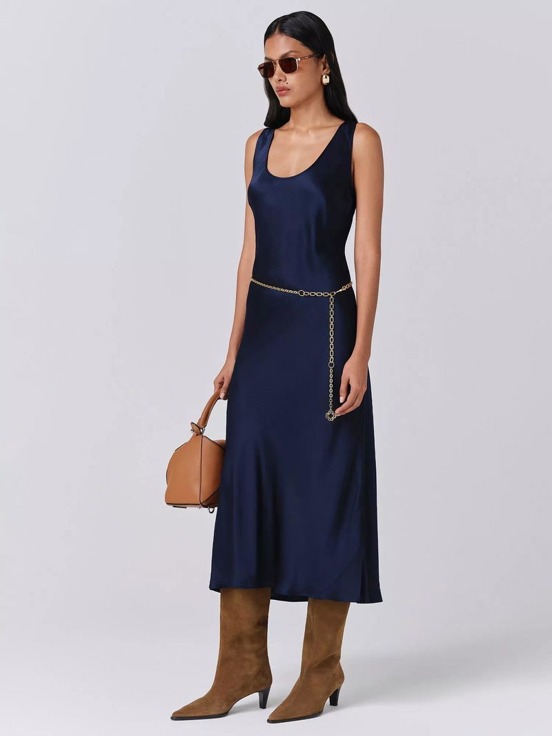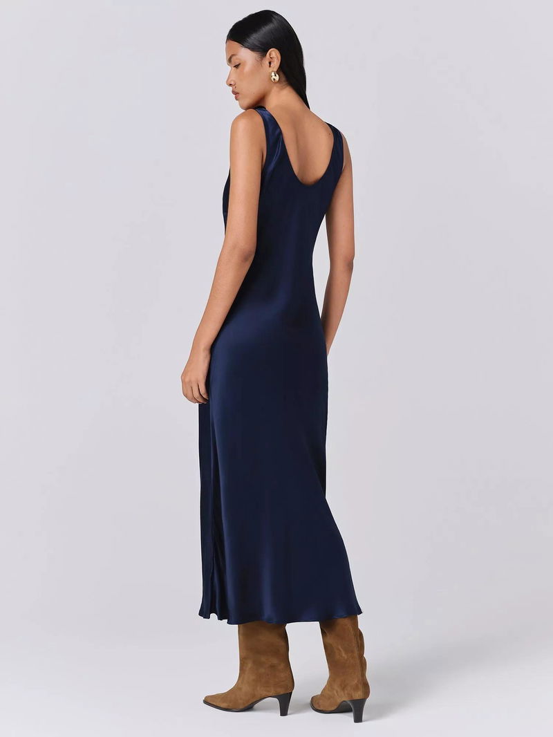 The Palm dress is a true wear-anywhere classic. A bias-cut satin slip dress made from satin. With thick straps that can conceal bra straps, it's both practical and sophisticated in equal measure. Pair with heels and a statement clutch for a chic and simple look at dressier events, or layer under a cosy knit and pair with long boots for a timeless cold-weather outfit.