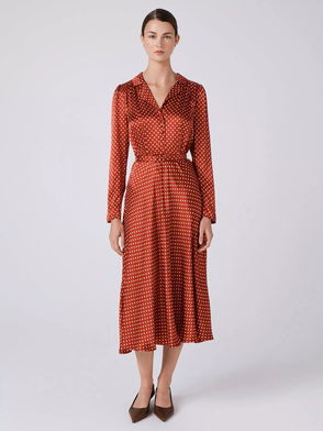 Sabrina is one of our best-selling styles and we’ve revised its shape to make it even more flattering. Its fit and flare silhouette is beautifully fluid while its ruched sleeves and gathered waist are unapologetically feminine. This season the style comes adorned with a sweet ditsy print on a lightweight satin fabric that makes it a year-round winner both with tights and without.