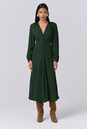 Set in a simple, A-line shape, this button detail mid-length dress from Ghost is crafted in lightweight, breathable cotton. With a universally flattering v-neckline and long balloon sleeves, it allows you to showcase its versatility.
