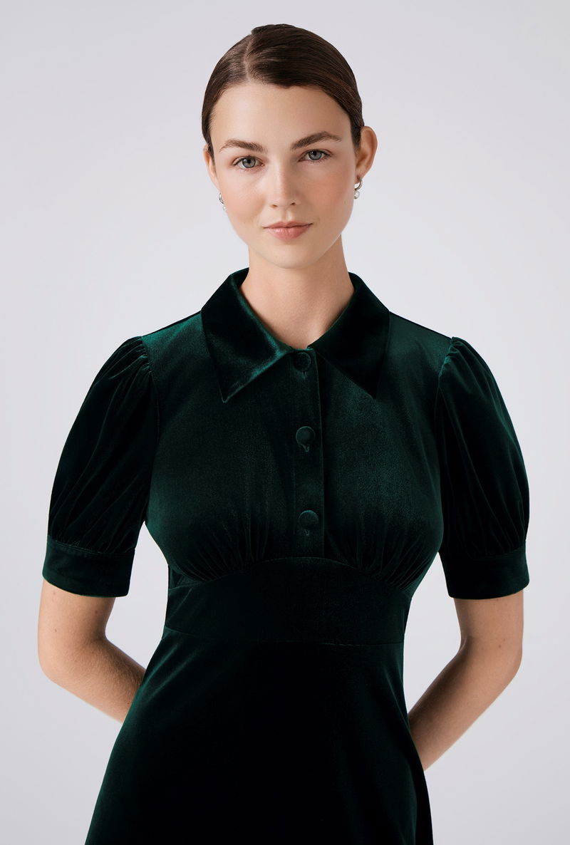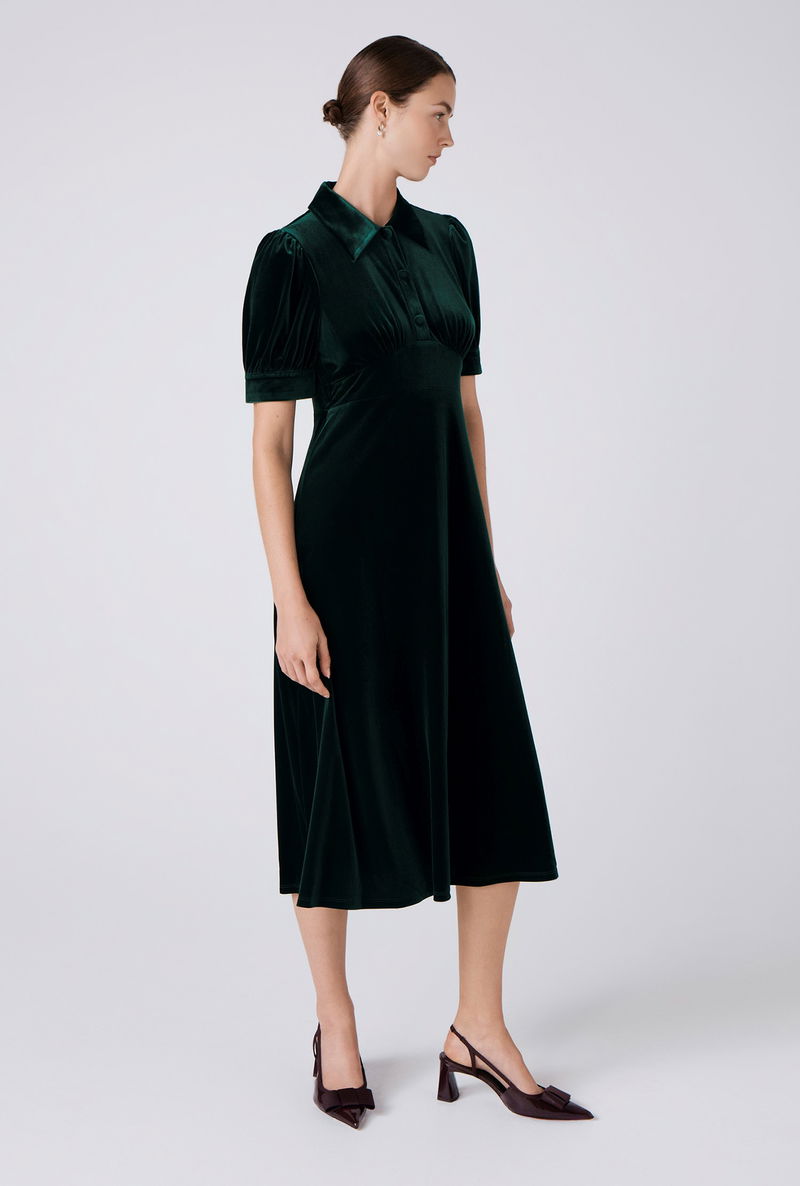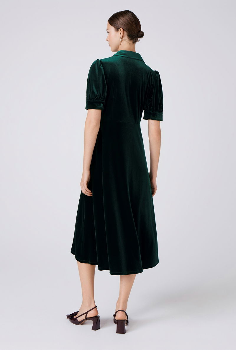If you invest in one dress this season, make it Wilma. Rich in subtle and sophisticated design details, consider it a forever piece that will never age. Featuring a chic pointed collar and front placket studded with statement covered buttons, the panelled waist and under-bust gathering add elegant shape, as does the bias cut skirt.