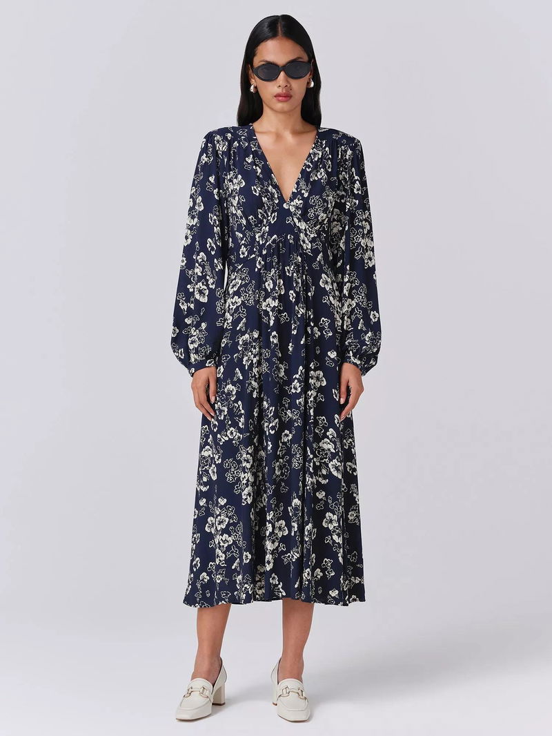 Wren Floral Midi Dress, Navy
