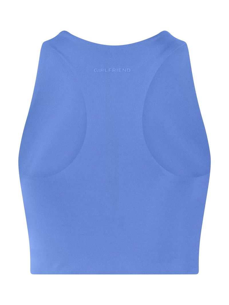 A tank-sports-bra hybrid that gives you full coverage and support with its high neckline and built-in support band. Designed for medium to high-impact activities. Double-lined, sweat-wicking material with four-way stretch. High neck with racerback. Built-in support band.