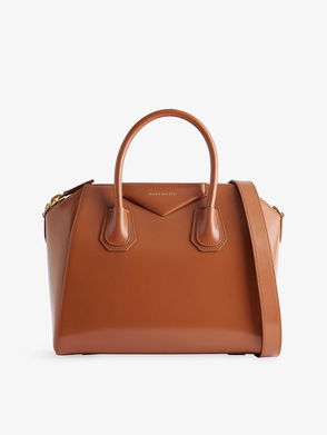 Givenchy leather top-handle bag. Magnetic fastening. Twin top handles, detachable strap, brand foil text print at exterior, gold-toned hardware, one main compartment, slip pocket at interior.