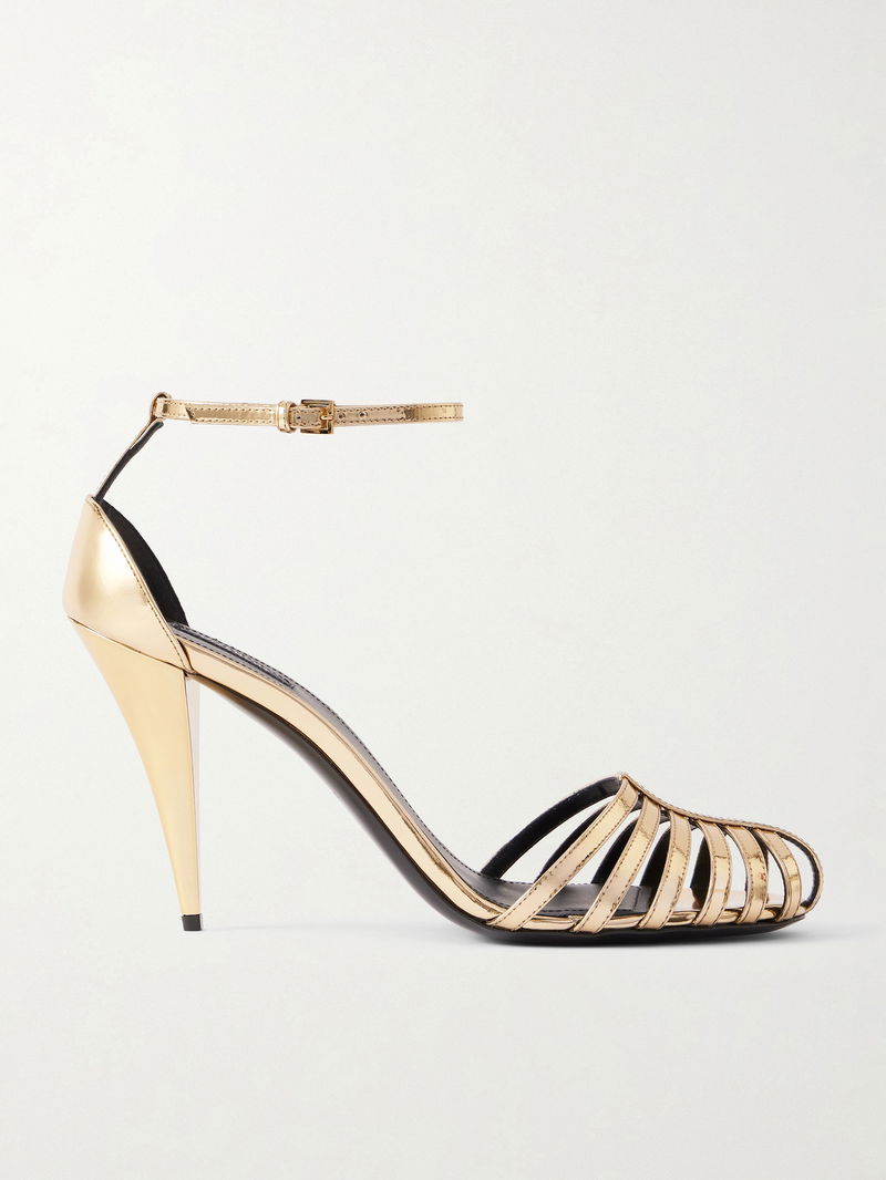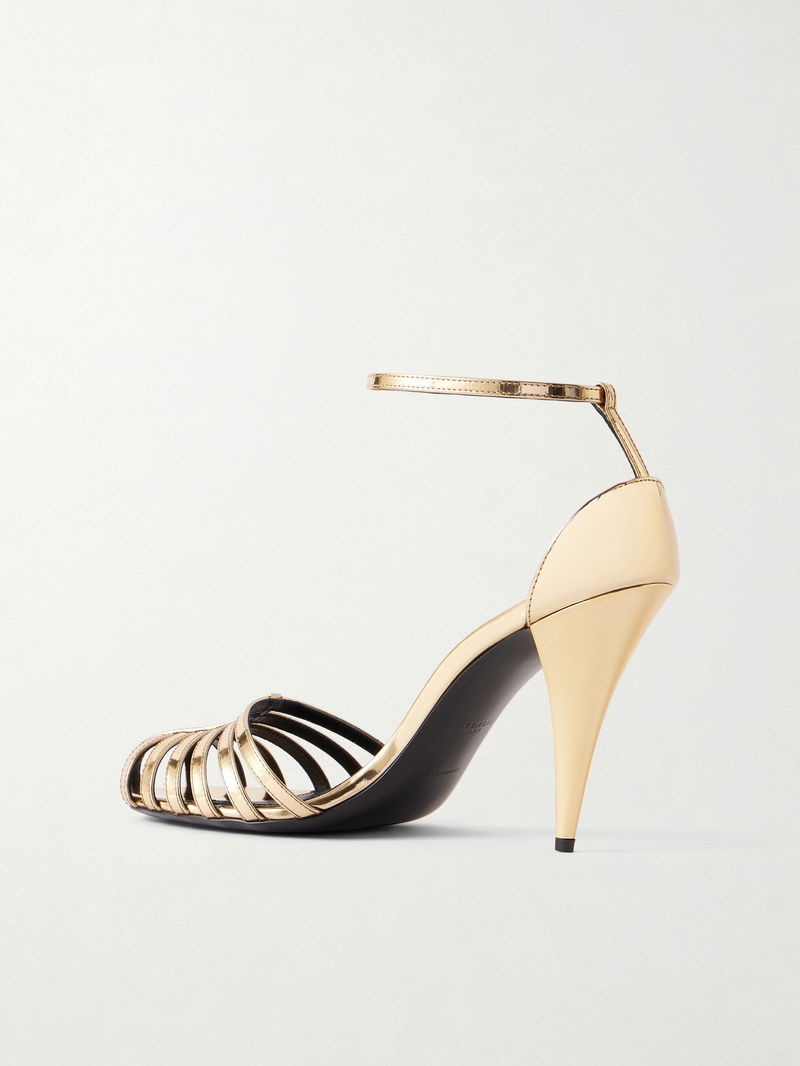 Givenchy's 'Cage' sandals are named after their strappy design. They've been made in Italy from gleaming gold leather and have tapered heels that offer 95mm of lift.