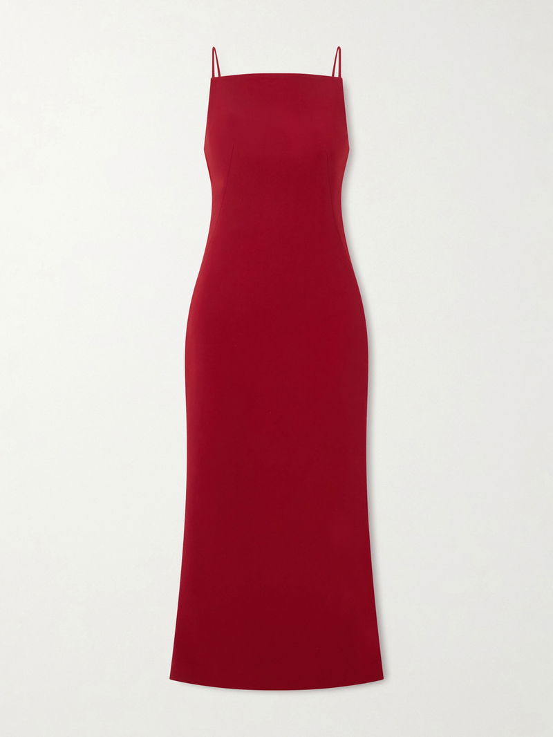 Givenchy's midi dress is chic in its simplicity. Tailored in Italy from cady that gently hugs your curves, it has a high, squared neckline and angular back seams that lead to a draped panel for pretty movement.