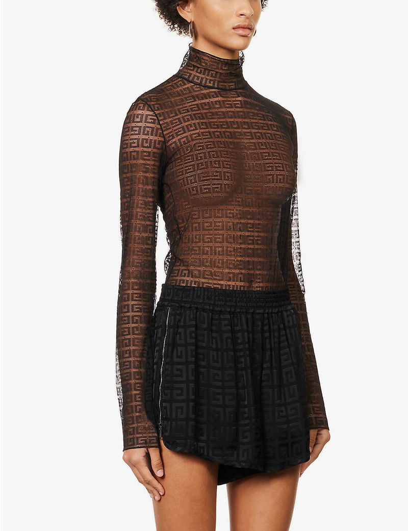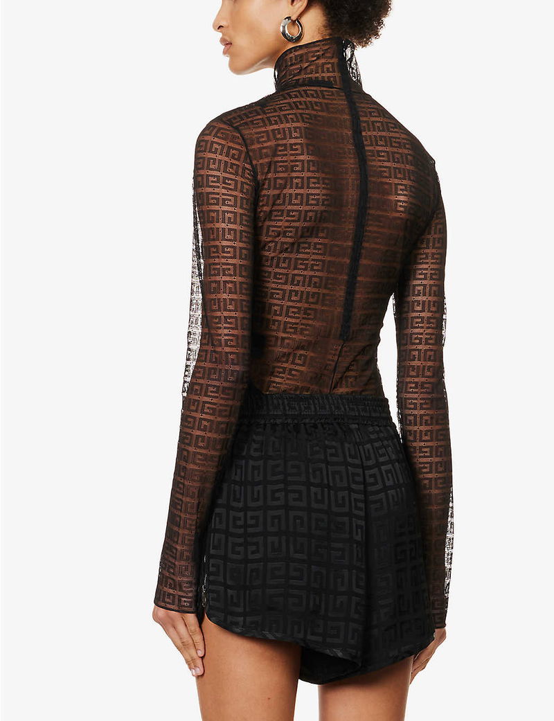 In the court of fashion, we’d crown Givenchy's Matthew M. Williams as fashion’s very own fortune teller, possessing a perceptive ability to envision the experimental, logo-laden ensembles we crave to slip on each season. The latest style to emerge from the label’s creative cauldron? This sensually sheer body. Crafted from swathes of wispy lace, it's sculpted to a high-neck silhouette and patterned with the house’s unmistakable 4G emblem interlocking across its panels.
