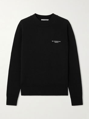 Givenchy's sweater is intarsia-knitted with the brand's capitalized logo and year of inception. It's made from insulating wool and cashmere-blend and has a relaxed fit that makes it practical to layer with a tank or tee.