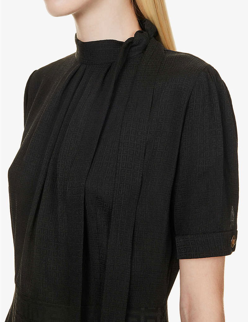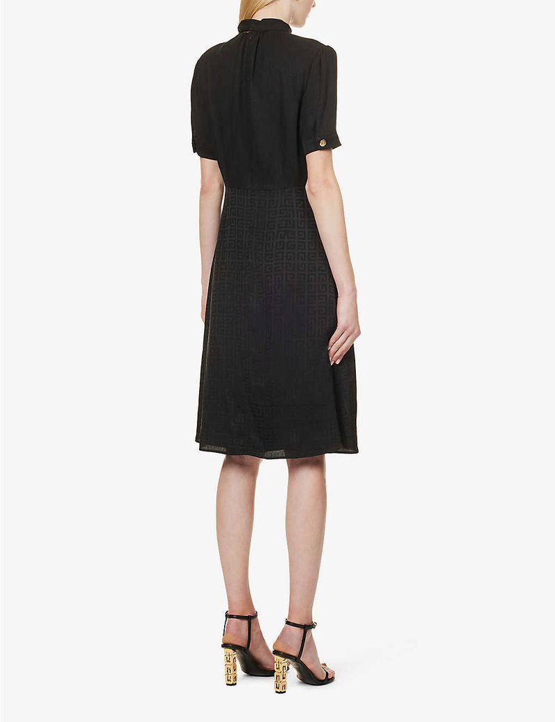 If there's one thing you can always expect from Givenchy's Creative Director, Matthew M. Williams, it's an eye-catching logo. And speaking of which, the designer dreams up the Lavaliere dress. Realised from airy silk to see you through chilly and balmy climes alike, this style's short-sleeved demeanour is offset by a billowing, calf-grazing hem. Of course, it wouldn't be a Givenchy creation without the 4G emblem, this time swathed in contrasting font sizes throughout.
