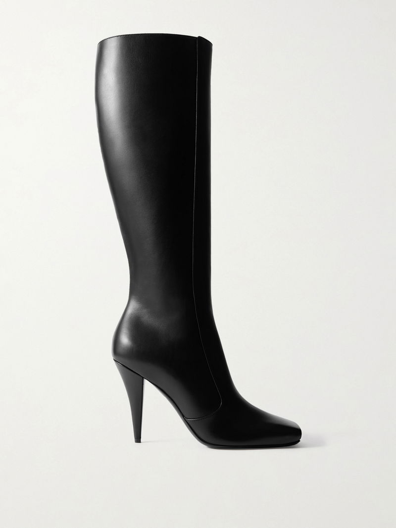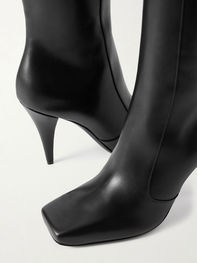 Givenchy's knee boots are so beautiful, you'll want to build your entire outfit around them. Defined by blunt square toes, they've been crafted in Italy from panels of smooth leather and have angular stiletto heels. Zip fastenings make them easy to slip on and off.