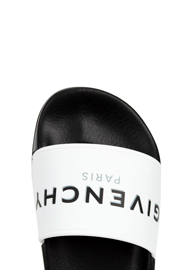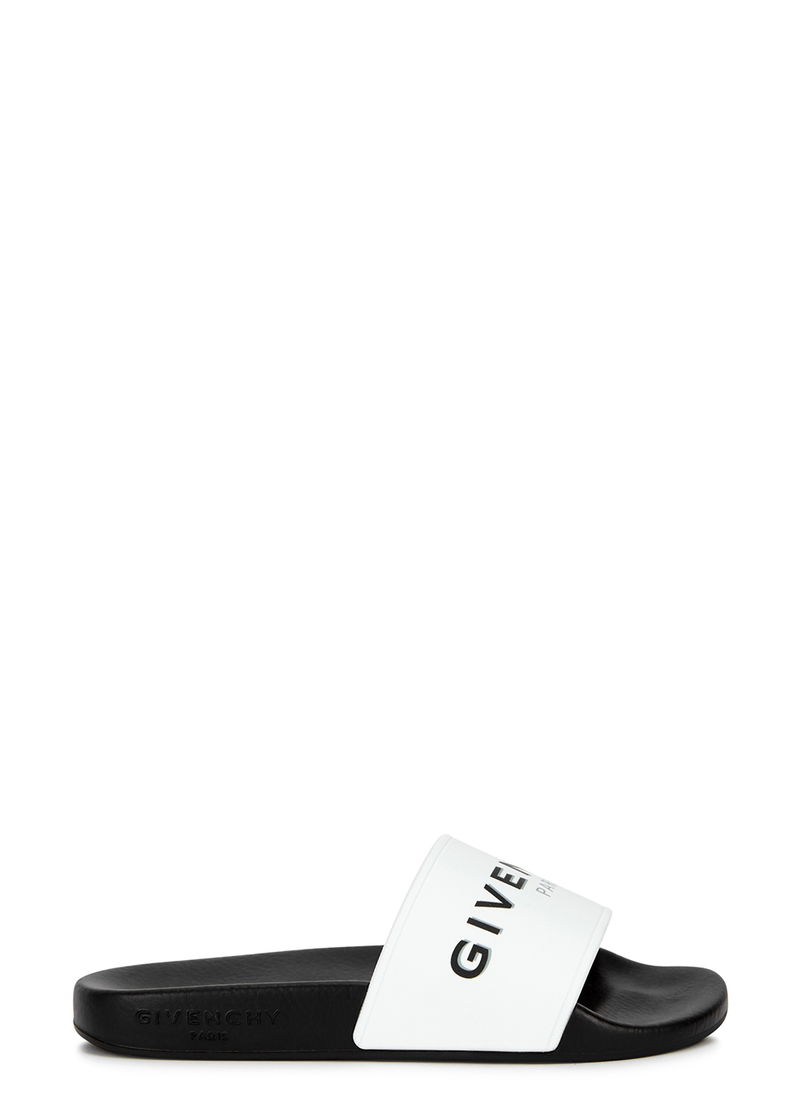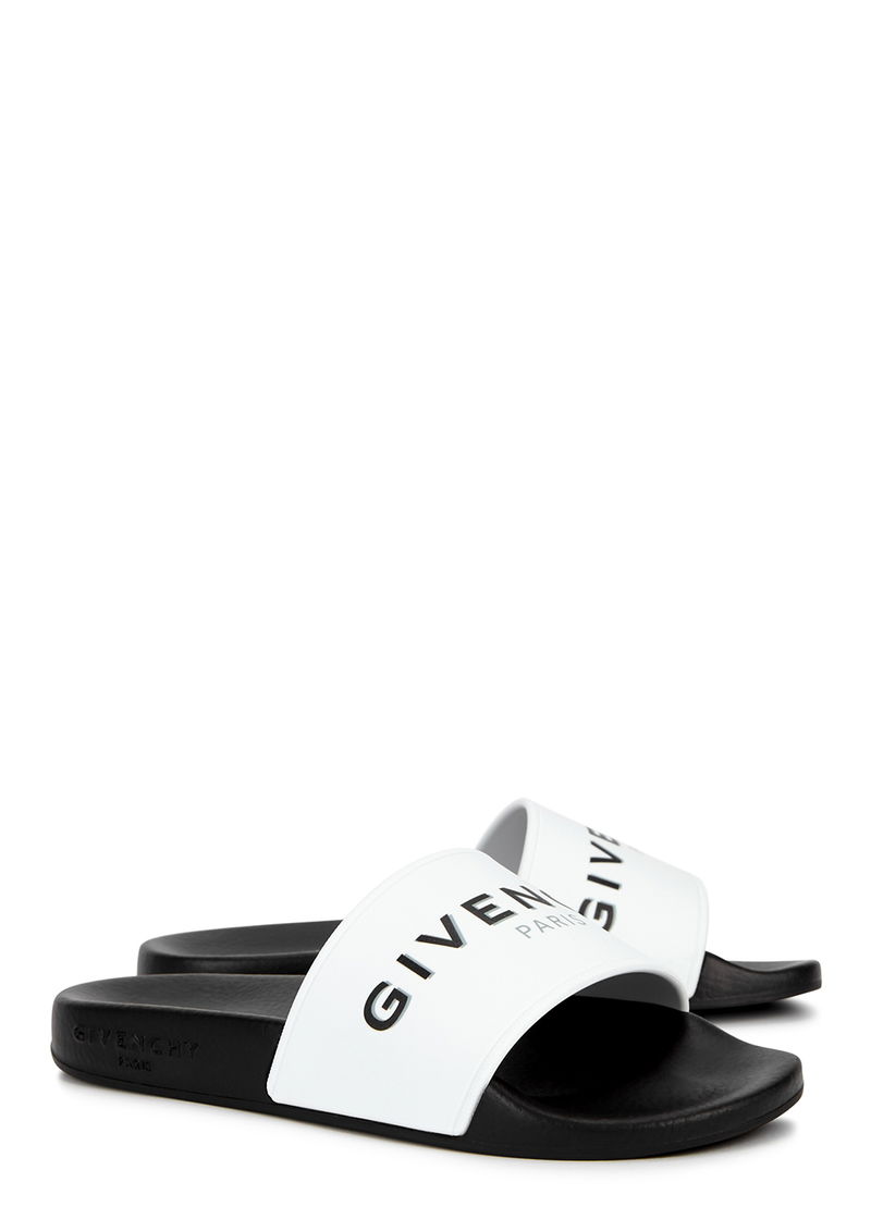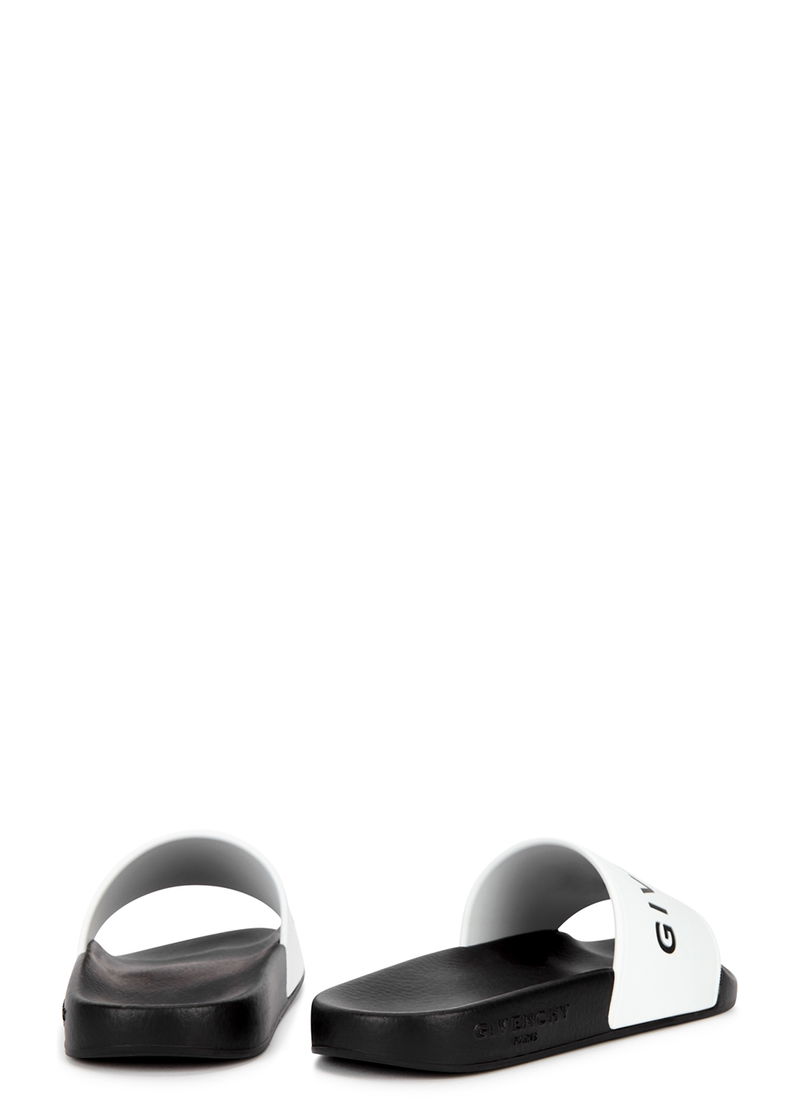 Givenchy white rubber sliders. Logo print, logo-embossed midsole, moulded footbed. Slip-on. Come with a dust bag.