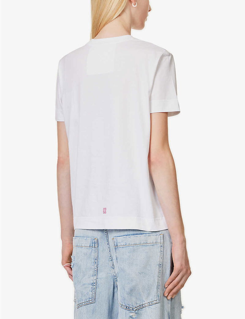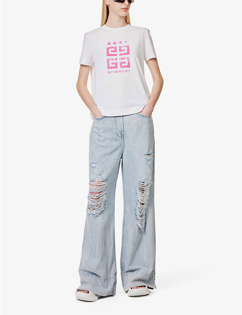 Hubert de Givenchy founded his namesake label in 1952, debuting with a collection consisting of architectural silhouettes that would result in the brand becoming known as the “enfant terrible of Haute Couture”. Leaving an indelible mark on the industry, the brand fast became recognised by the quadruple ‘G’ logo placed front and centre of this cotton T-shirt. Based on the disruptive, distressed effect on this rendition, we reckon the Maison’s late founder would approve.