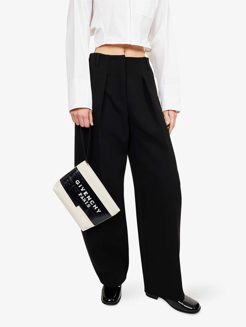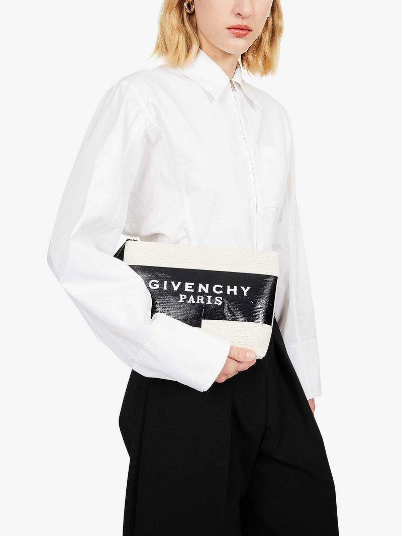 Givenchy canvas pouch. Soft shape, logo tape print at front, one main compartment.
