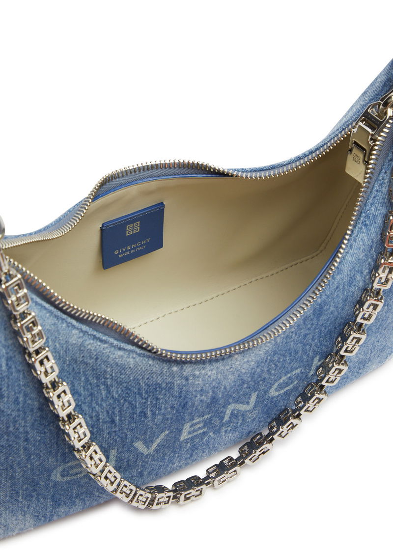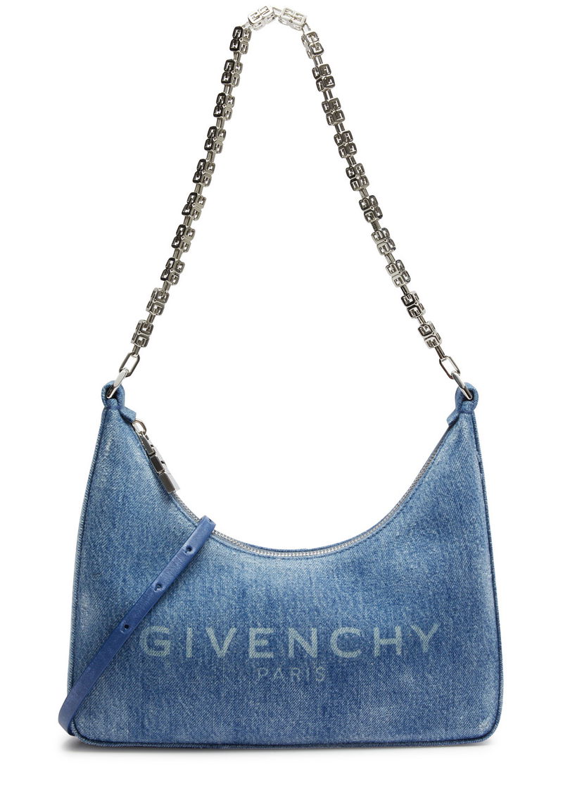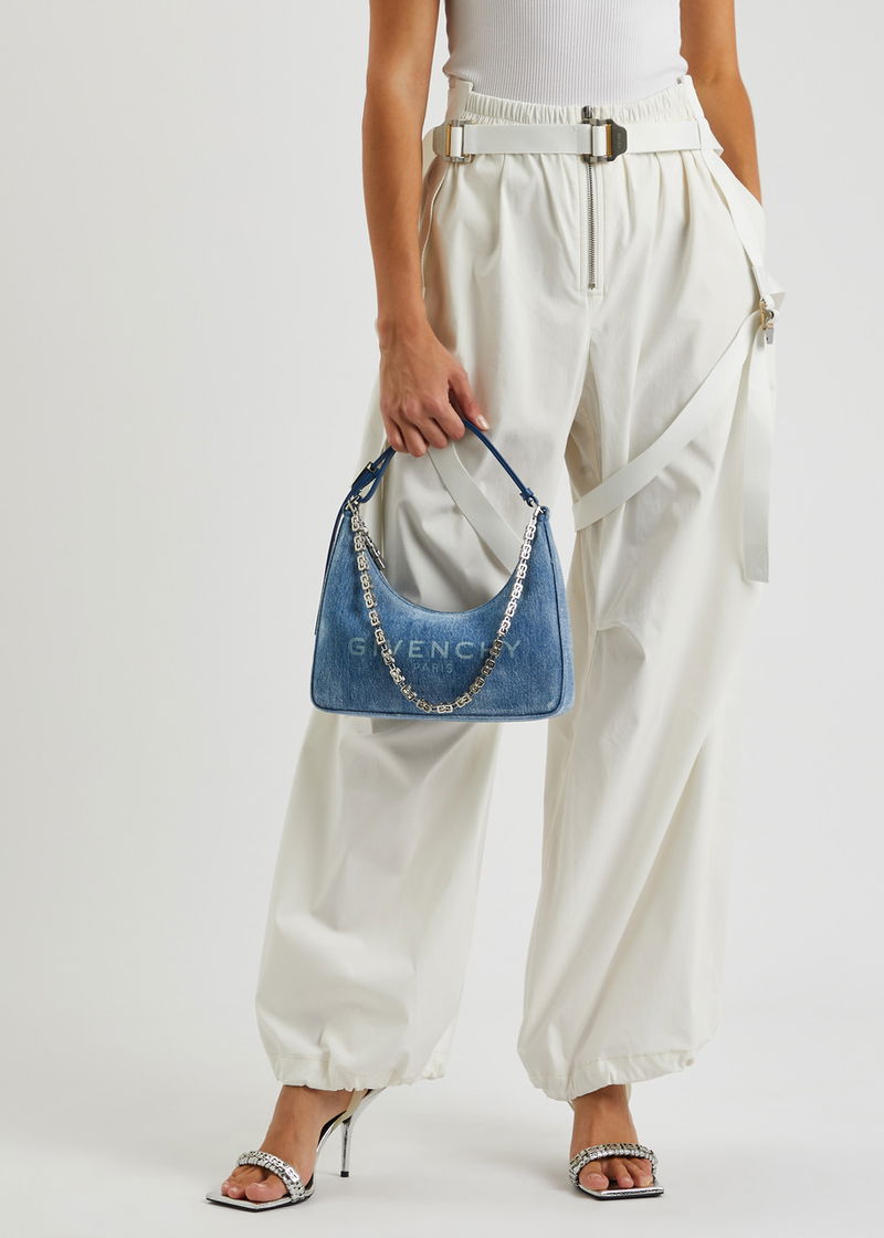 Givenchy reworks its Moon Cut Out bag through a streetwear lens for this faded denim style. Shaped to a baguette silhouette, this small style is stamped with the house’s logo and can be carried by the G Cube chain handle or leather shoulder strap.