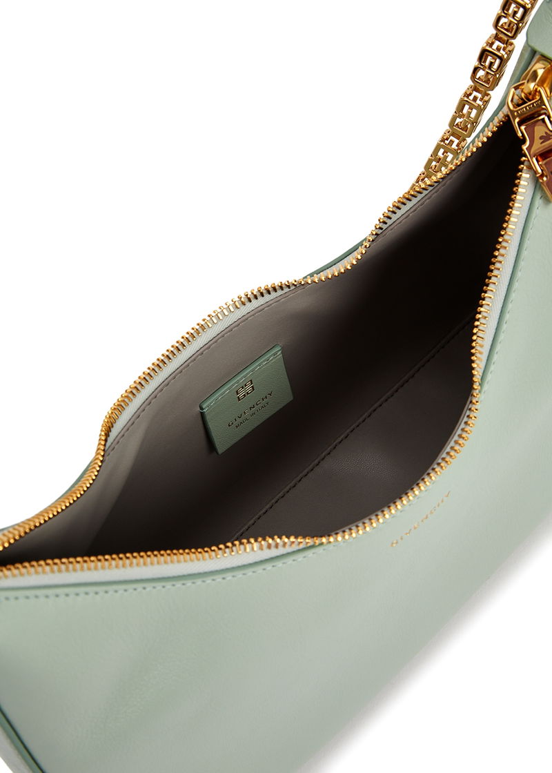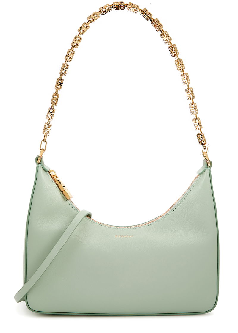 Givenchy’s Moon Cut Out bag is named after its curved crescent shape. Subtly stamped with a logo, this small leather style is topped with the label’s chunky G Cube chain that can be used as a shoulder strap or left to drape when using the coordinating leather top handle.