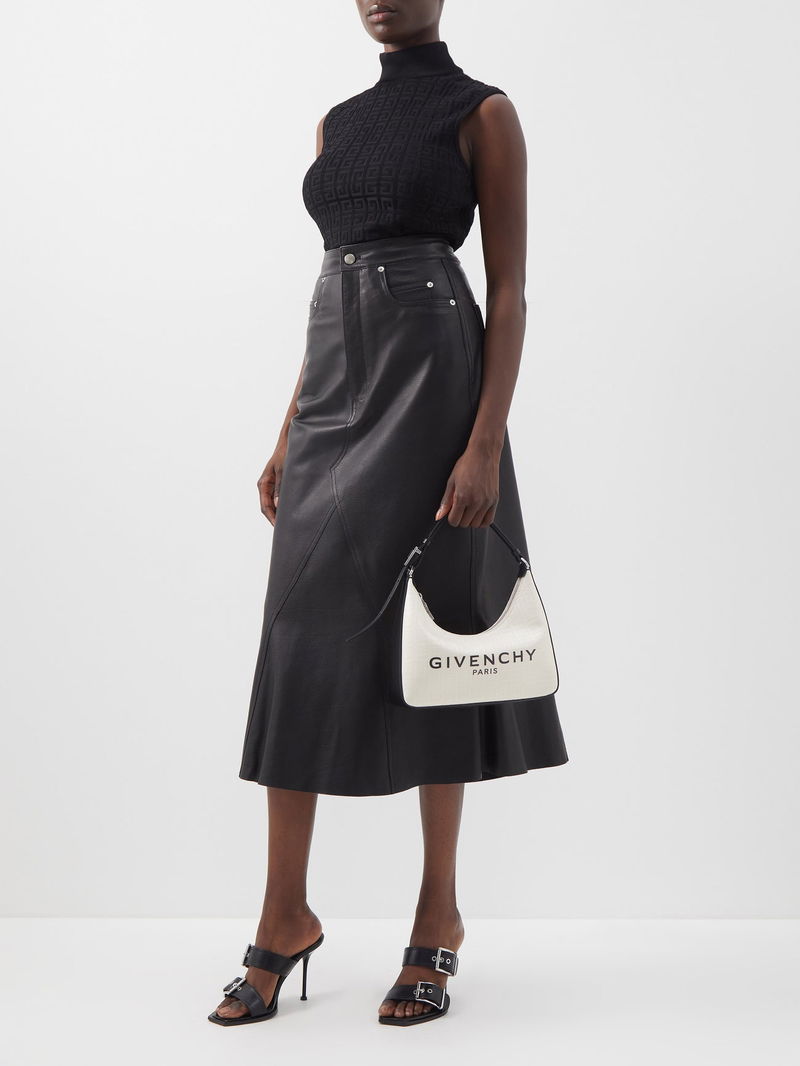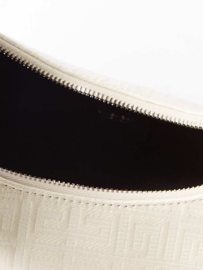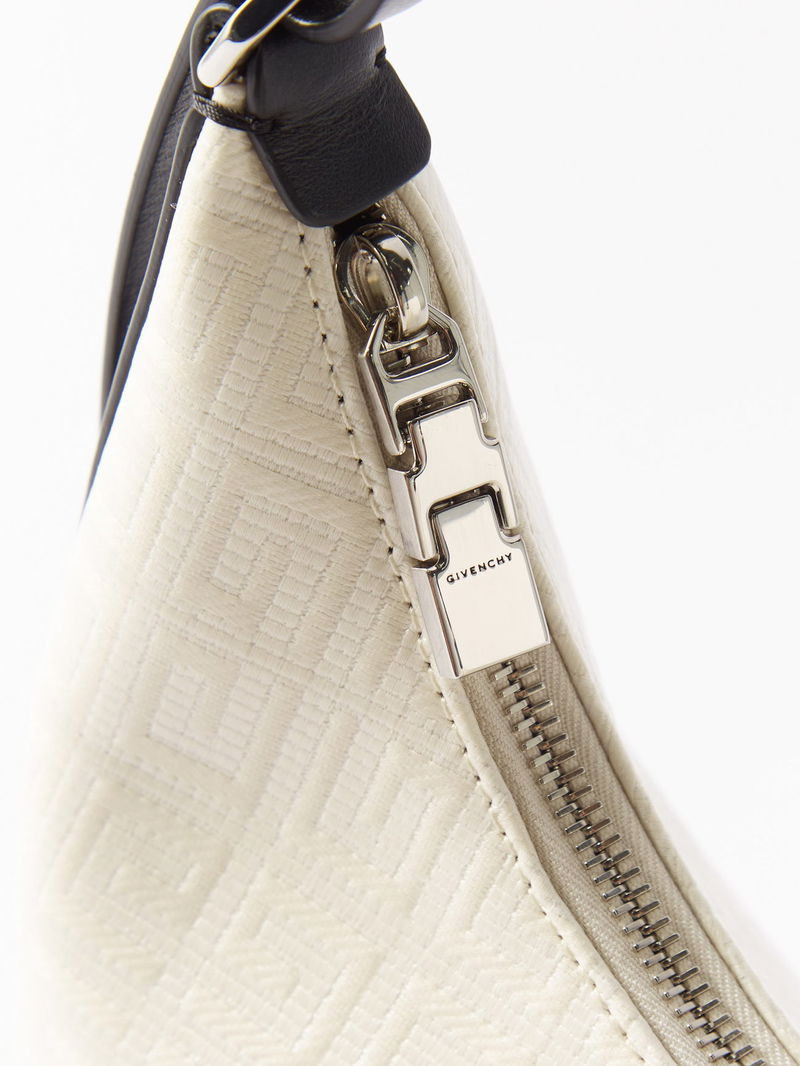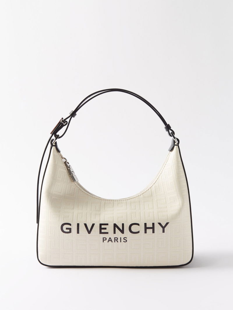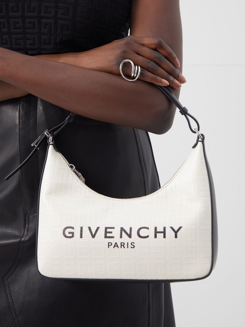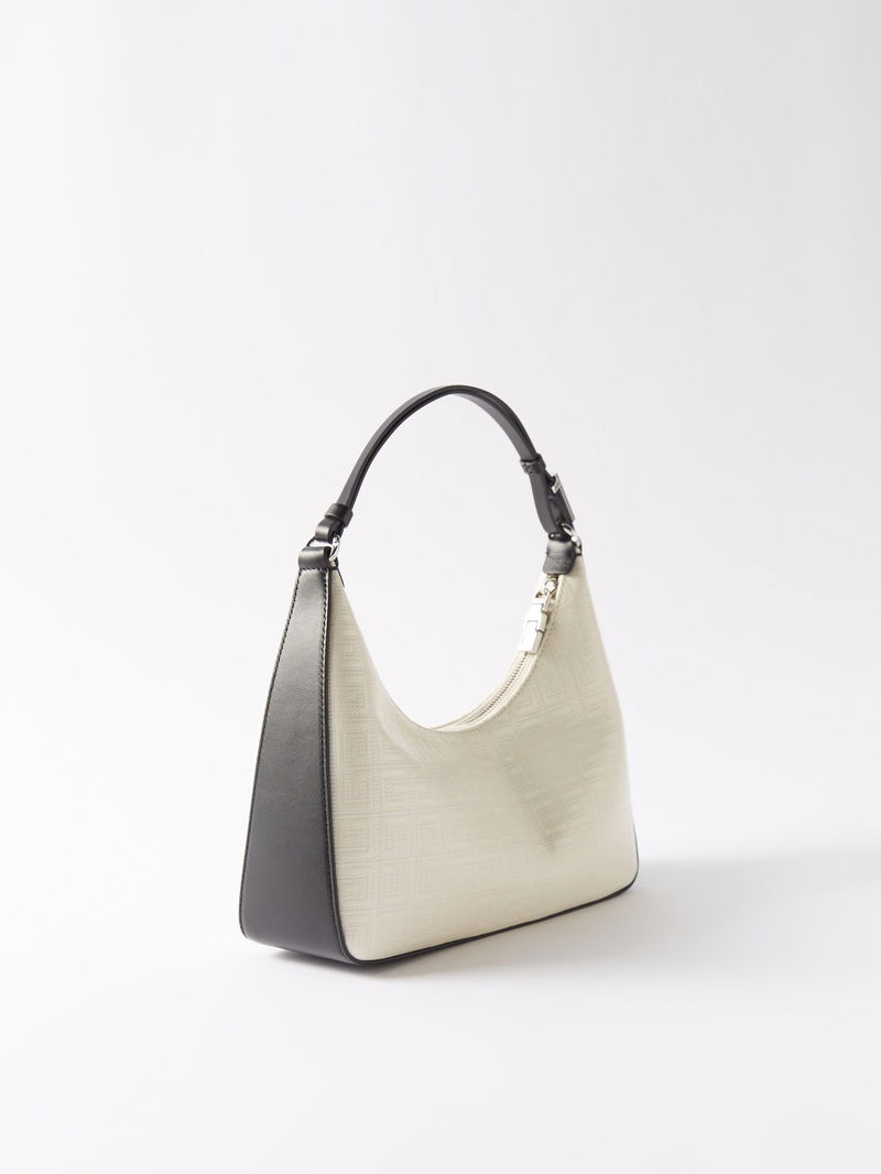 Givenchy's Moon shoulder bag is shaped from white coated canvas with the house's 4G-jacquard design, framed by supple black faux-leather panels and silver hardware.