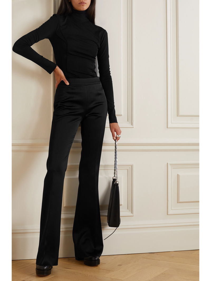 Givenchy's pants are Italian-made from smooth crepe that's been laminated to give them a glossy, satin sheen.