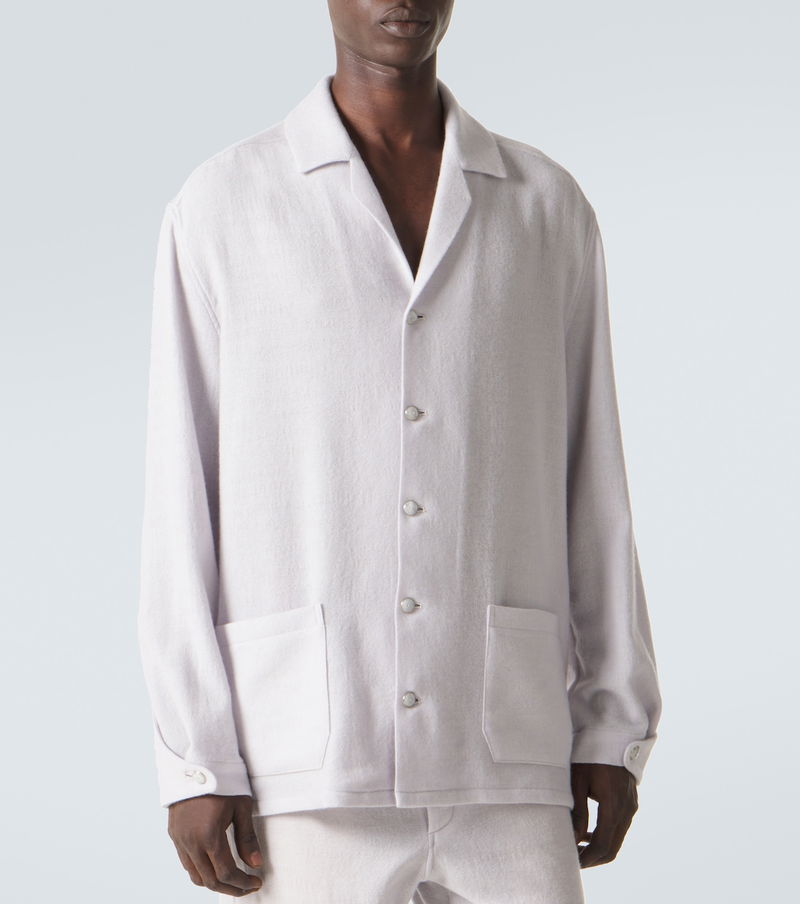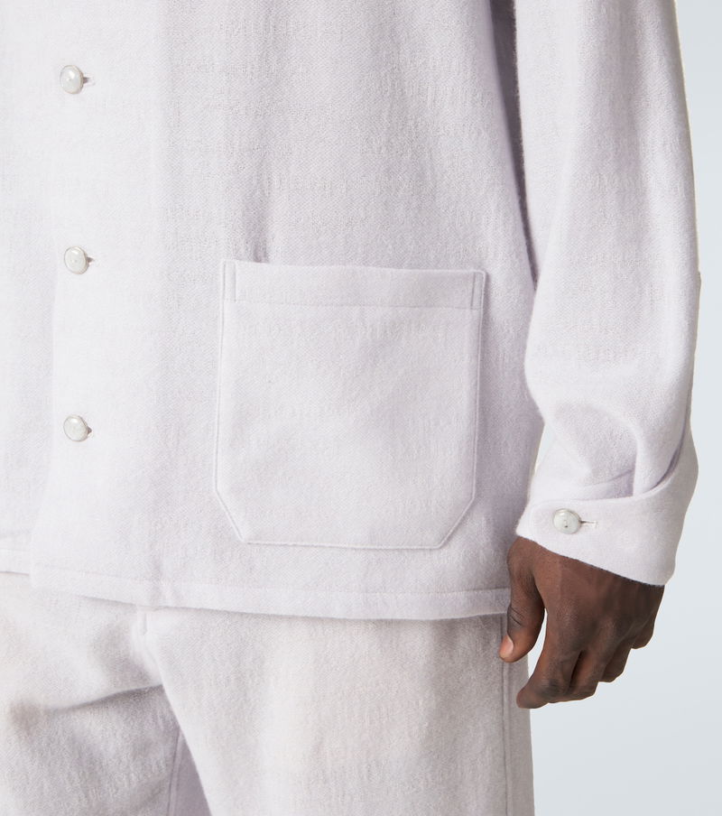 Each God’s True Cashmere shirt is adorned with hand-carved gemstones at the placket, pockets, and cuffs, thoughtfully selected for their positive qualities. The Affirmations pajama shirt is crafted from a fine cashmere yarn with moonstone embellishments.