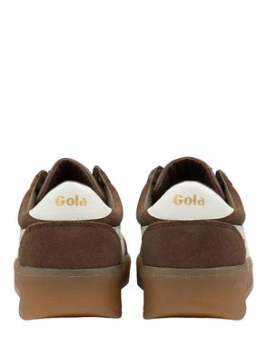 The Stadia Leather references Gola's iconic sporting heritage. Constructed with a white quilted leather upper, suede toe, a gold heel tab and set on a classic gum sole, this women's trainer merges classic design with contemporary style.