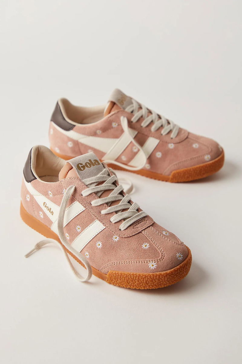 The signature Gola sneaker you know and love, featuring sleek suede uppers, leather overlays, and a textured gum sole. Now adorned with FP Exclusive dainty flower detailing.