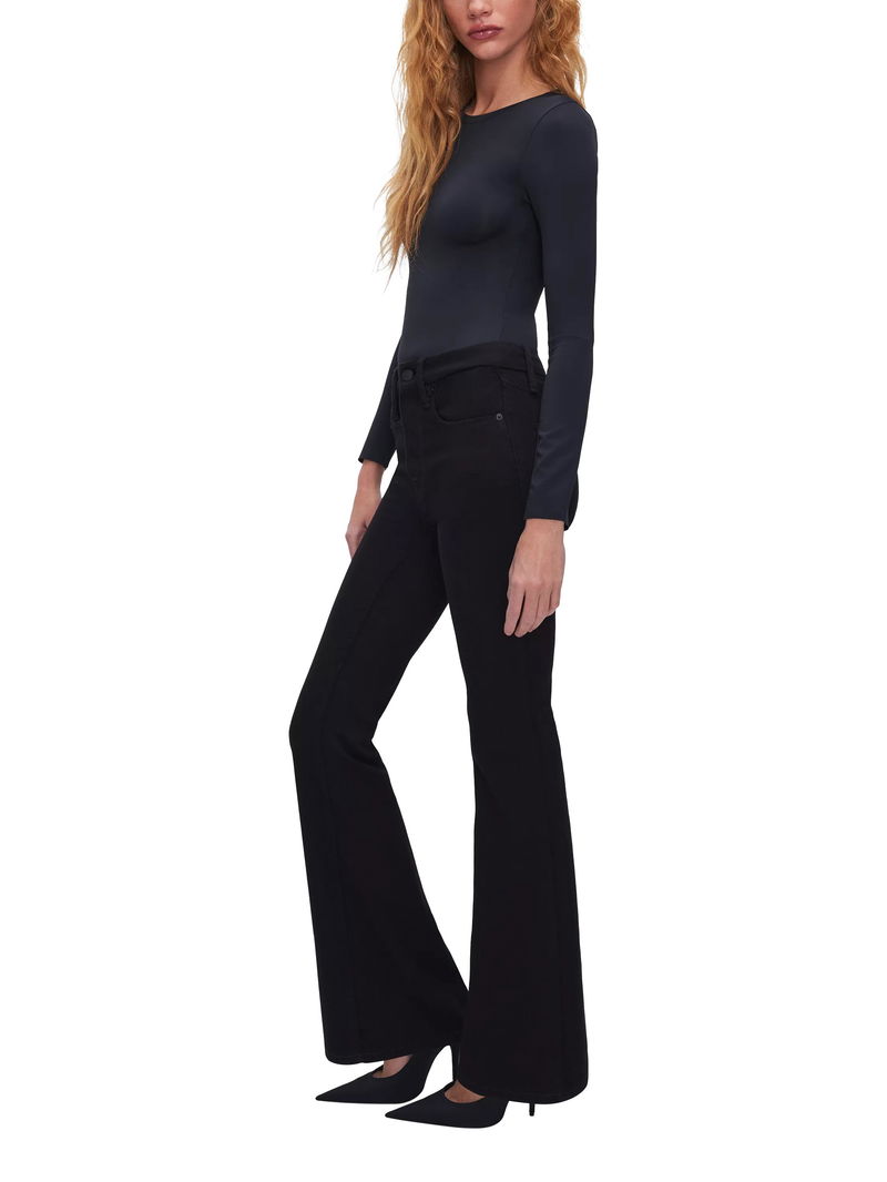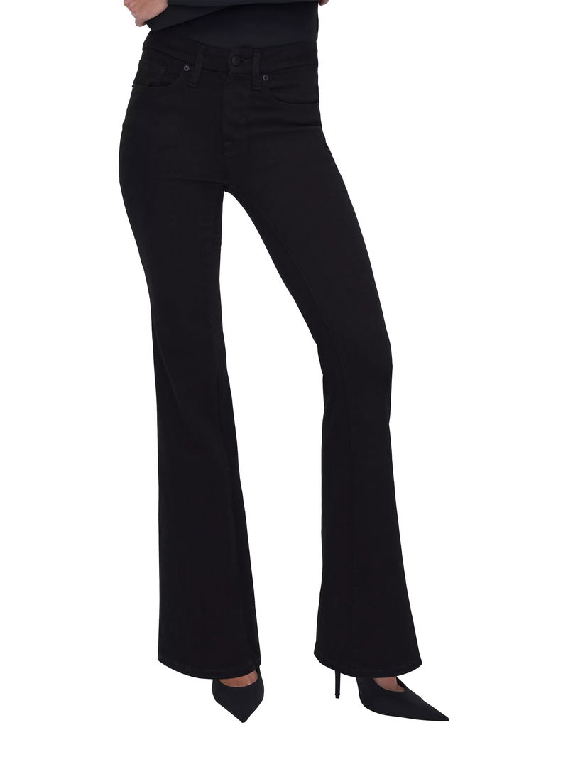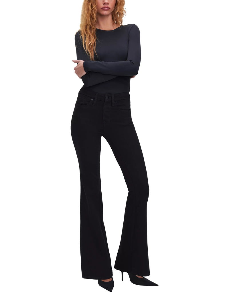 Flared jeans crafted with a close fit up top and exaggerated volume through the leg from Good American. Sculpted from denim with a super comfortable high rise and a button fastening, they fall to a regular length.
