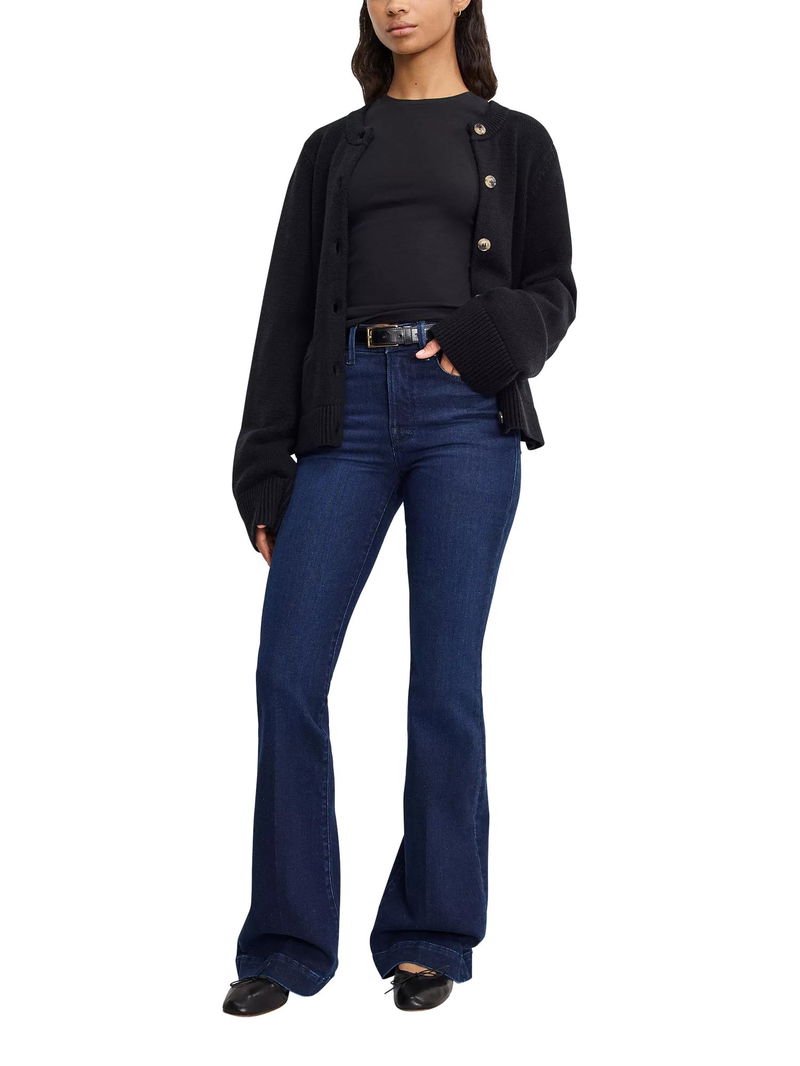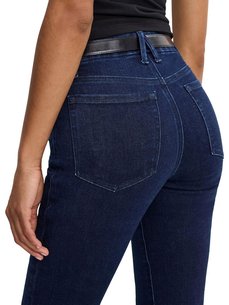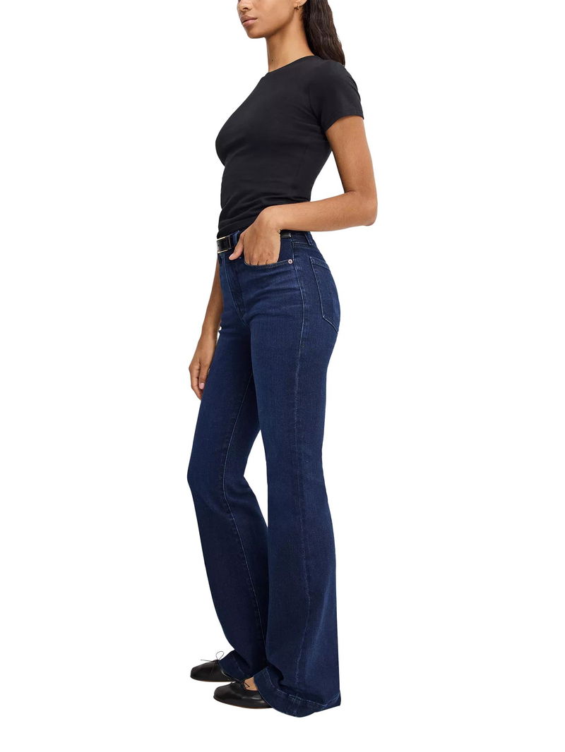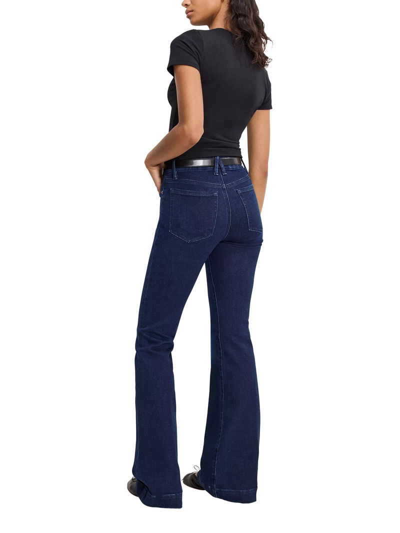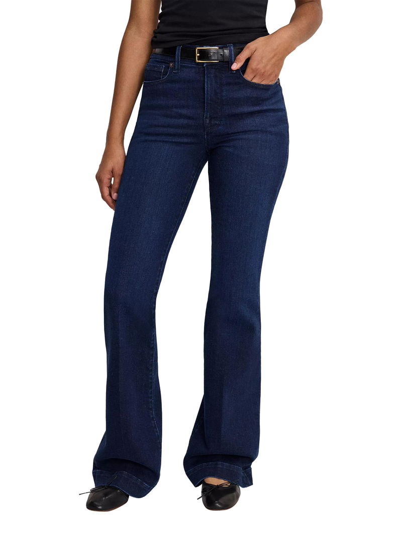 A pair that you'll wear on repeat, introducing this flared style from Good American. Sculpted from compression denim with an on-trend high rise and a button fastening, they fall to a full-length.