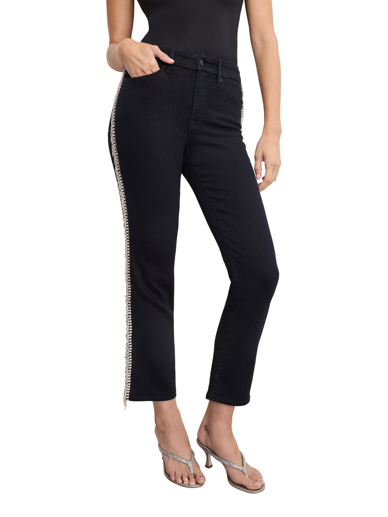 Good American designs jeans, bodysuits, swimwear and other everyday basics for women with body positivity and inclusivity in mind. Sizes run from 4 to 28, and pieces are shown on different sized models. The B-Corp certified brand was created by Khloe Kardashian and Emma Grede.