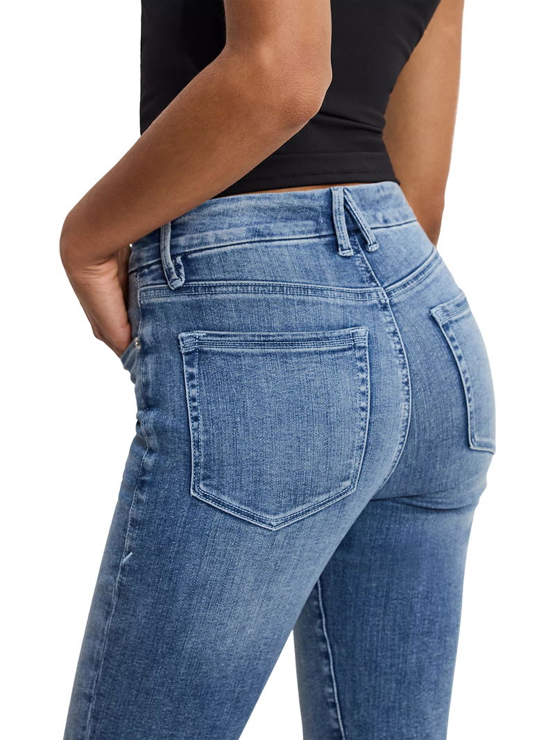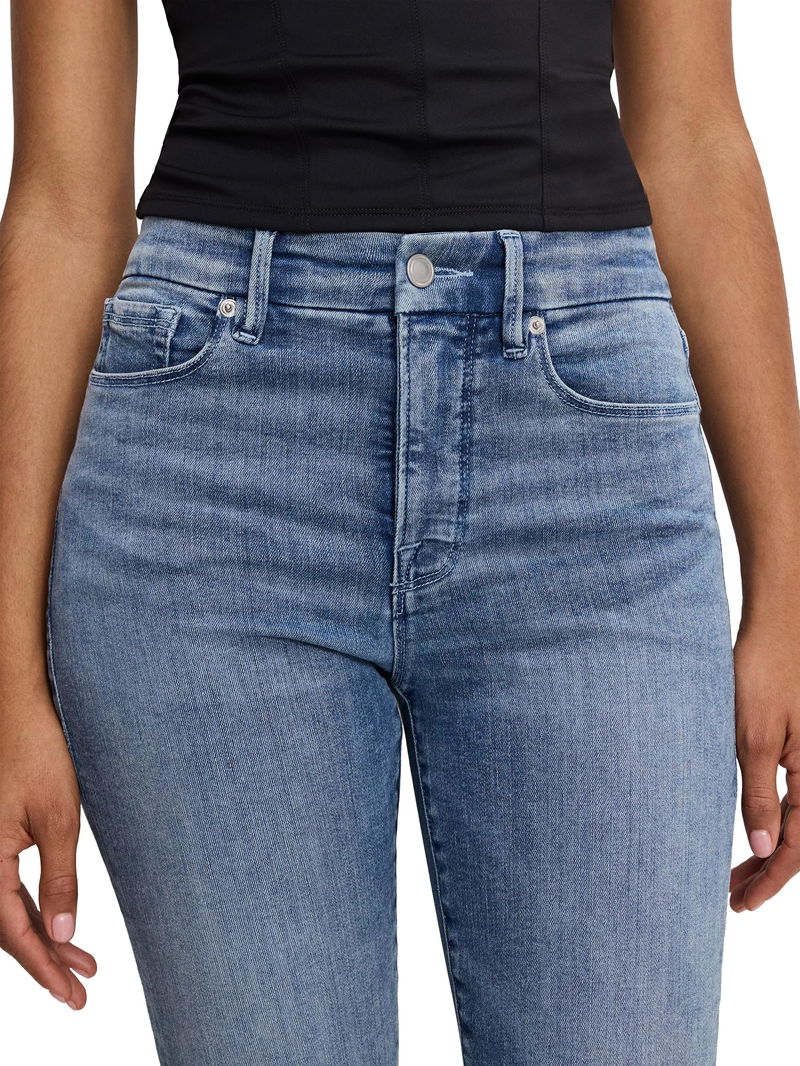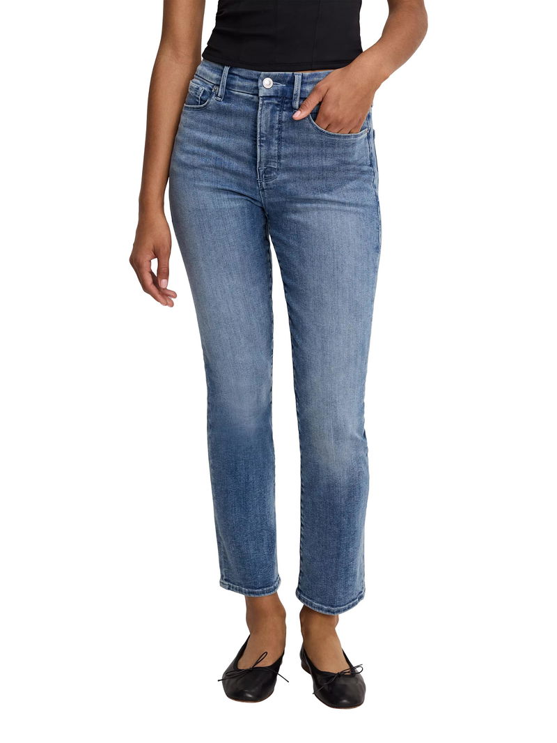 Good American designs jeans, bodysuits, swimwear and other everyday basics for women with body positivity and inclusivity in mind. Sizes run from 4 to 28, and pieces are shown on different sized models. The B-Corp certified brand was created by Khloe Kardashian and Emma Grede.