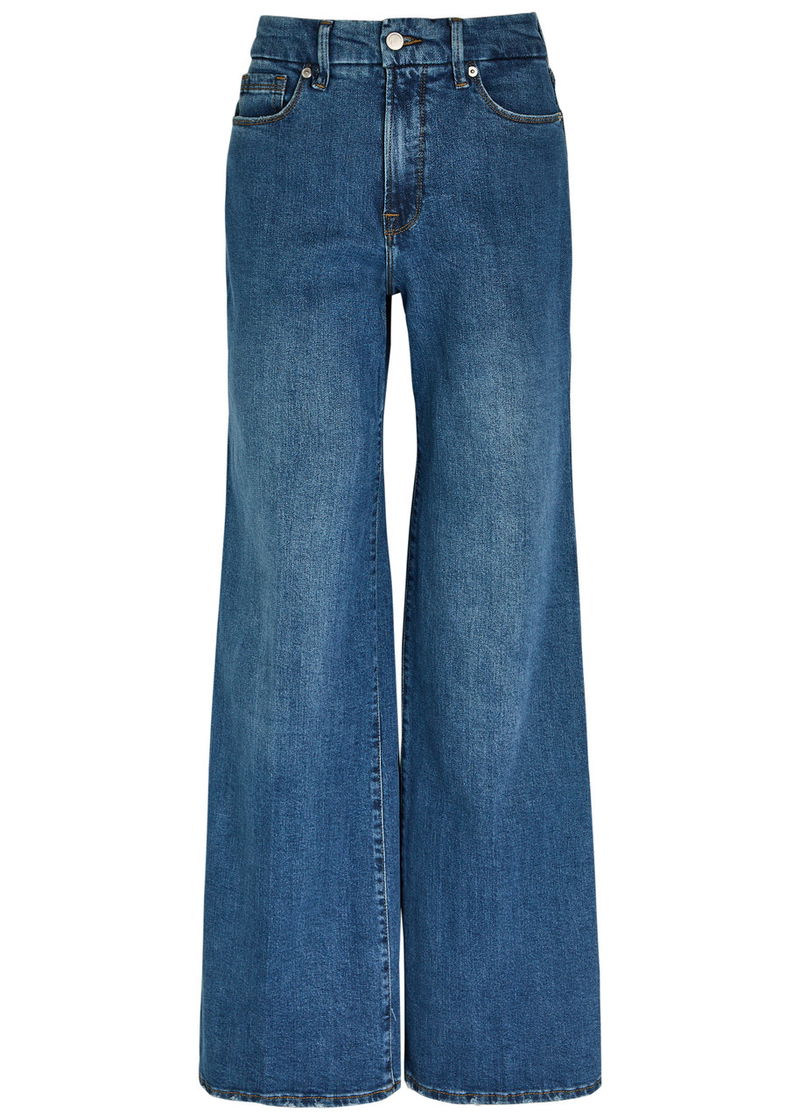 Good American designs jeans, bodysuits, swimwear and other everyday basics for women with body positivity and inclusivity in mind. Sizes run from 4 to 28, and pieces are shown on different sized models. The B-Corp certified brand was created by Khloe Kardashian and Emma Grede.